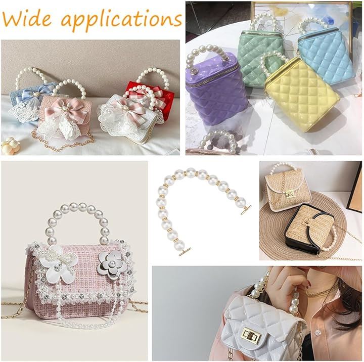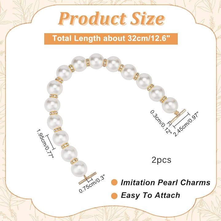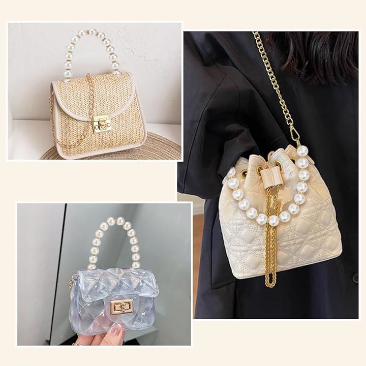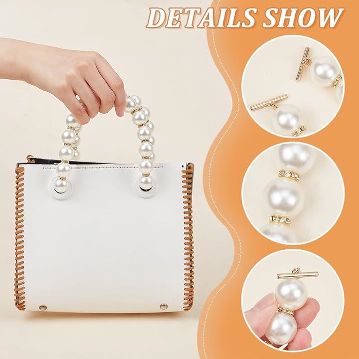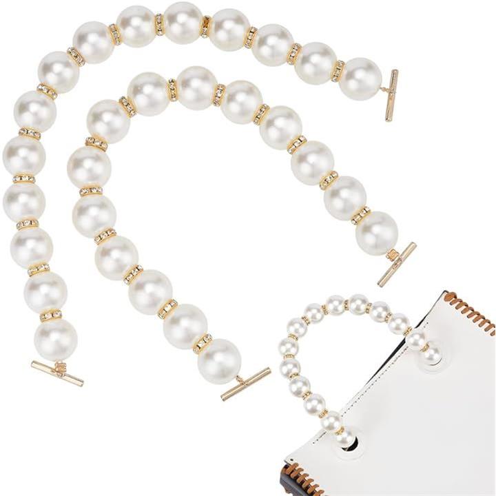 2本 パールビーズ バッグストラップ 32cm ハンドバッグ 持ち手 付け替え チェーン
