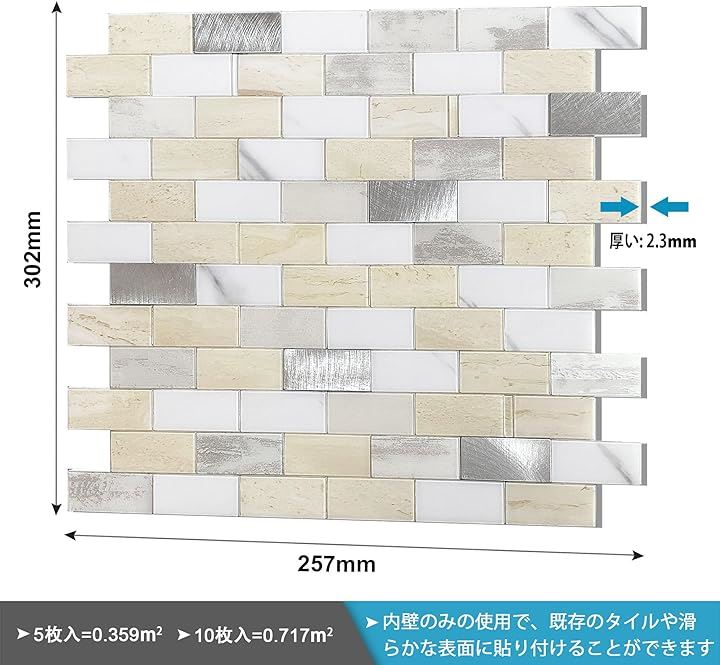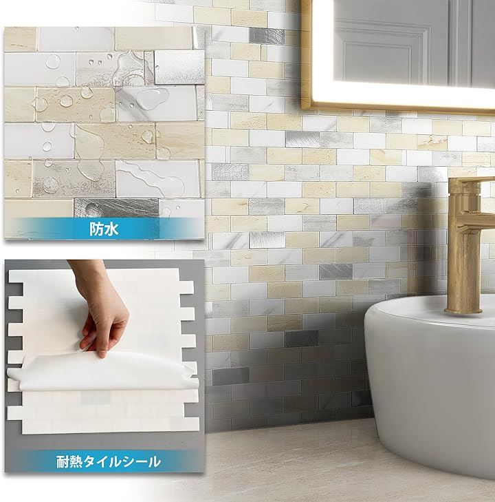 タイルシール タイル柄リメイクシート 耐熱 防水 DIY 壁 5枚
