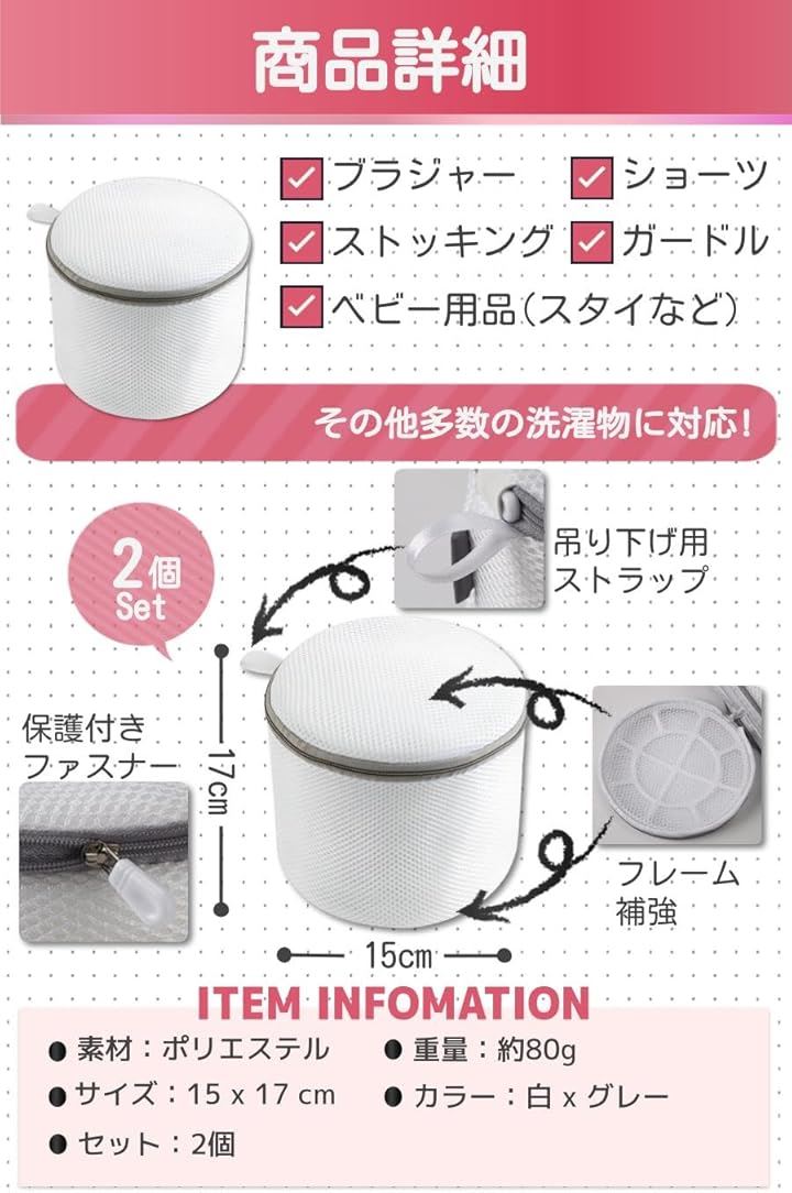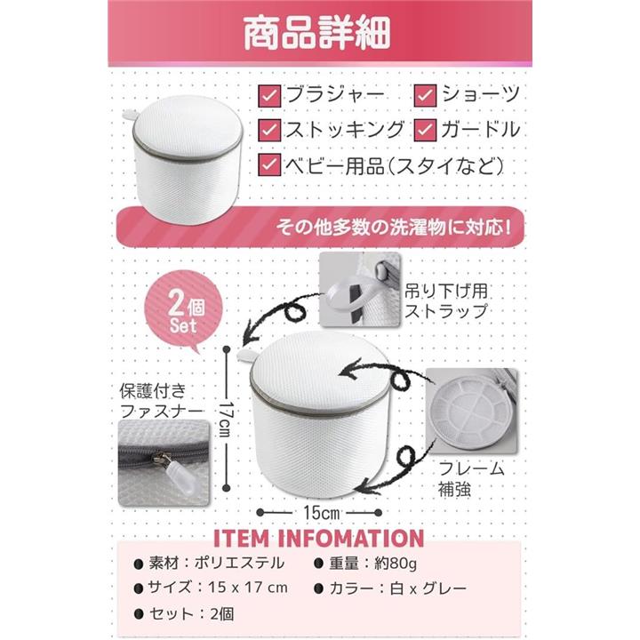 洗濯ネット ブラジャー用 円筒型 崩れない 下着 ランドリーネット 2個セット