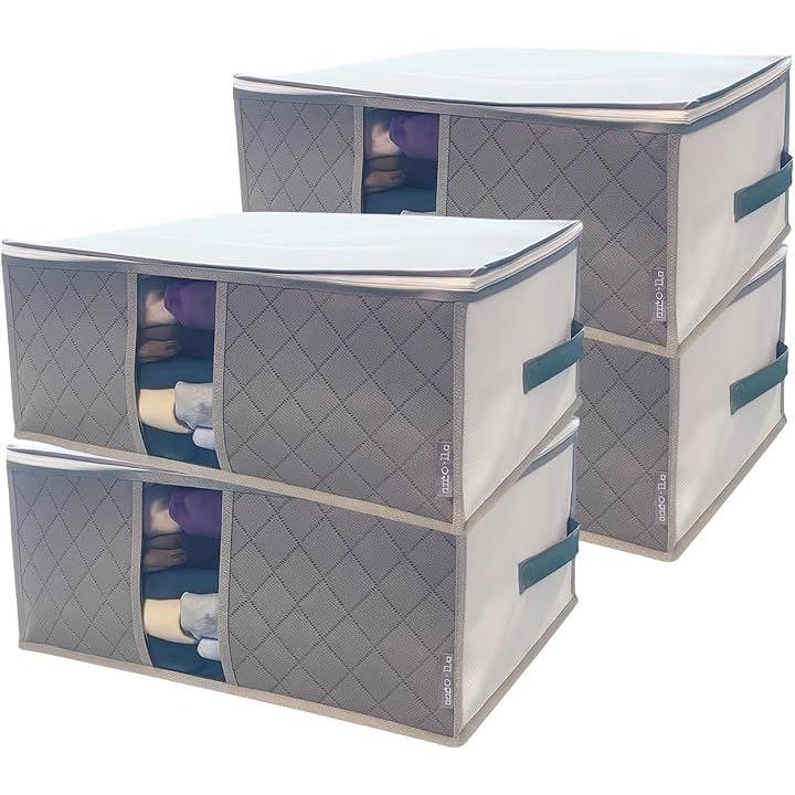 布団収納袋 活性炭シート入 大容量 収納ケース 掛け 敷き 布団をまとめてスッキリ収納 持ち手 透明窓付 通気性の良い 不織布製