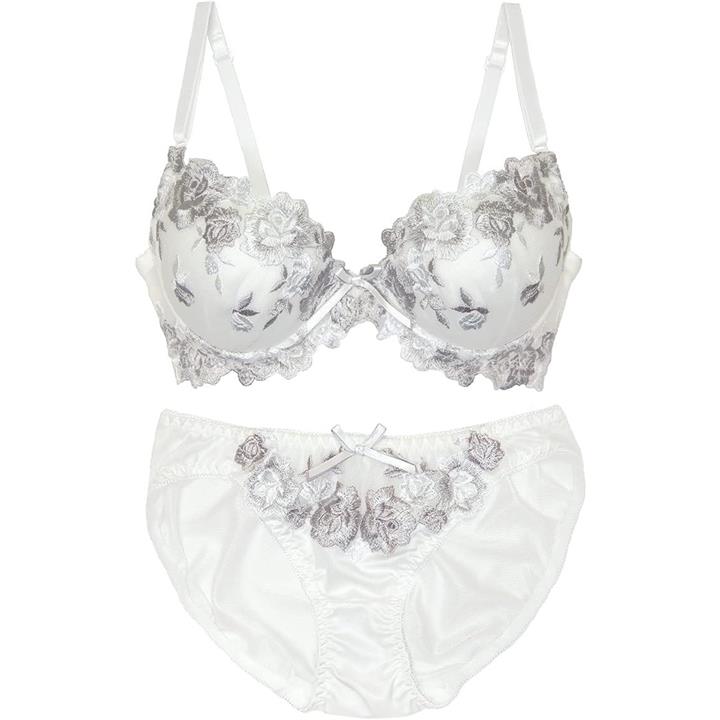 ブラジャー、ショーツ共に大胆に施された刺繍は着るだけで女性らしさをグッと引き出してくれるデザインとなっております。