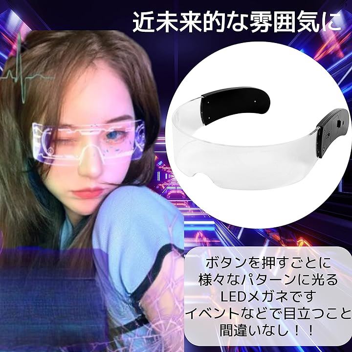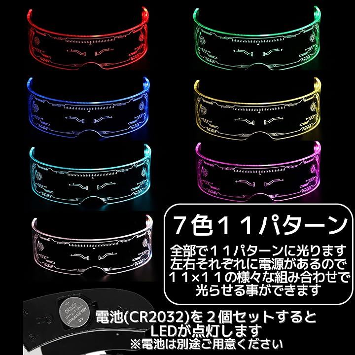 サイバーパンク 光るメガネ LED サイバーグラス ゴーグル おもしろめがね パーティー コスプレ 近未来 7色 11モード