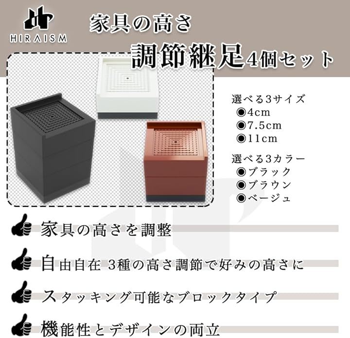 高さ調整 継足 机 テーブル こたつ ベッド ソファー 高さ調節 4個 セット