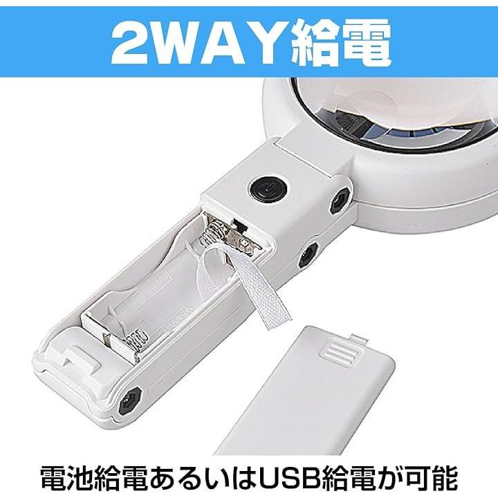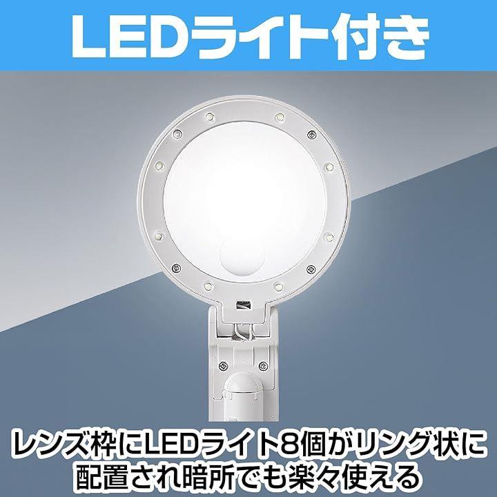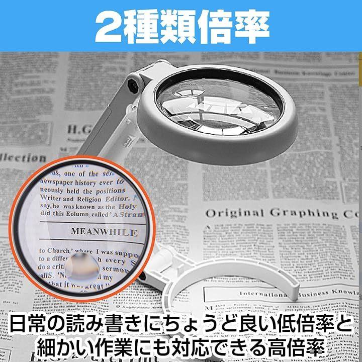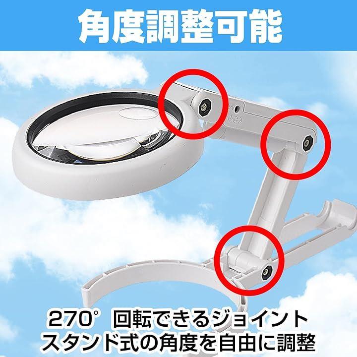 拡大鏡 卓上 手持ち両用 ルーペ 5倍 10倍 虫眼鏡 スタンドルーペ 8LEDライト レンズ 2WAYS給電 折り畳み式