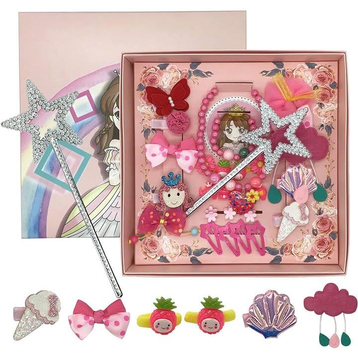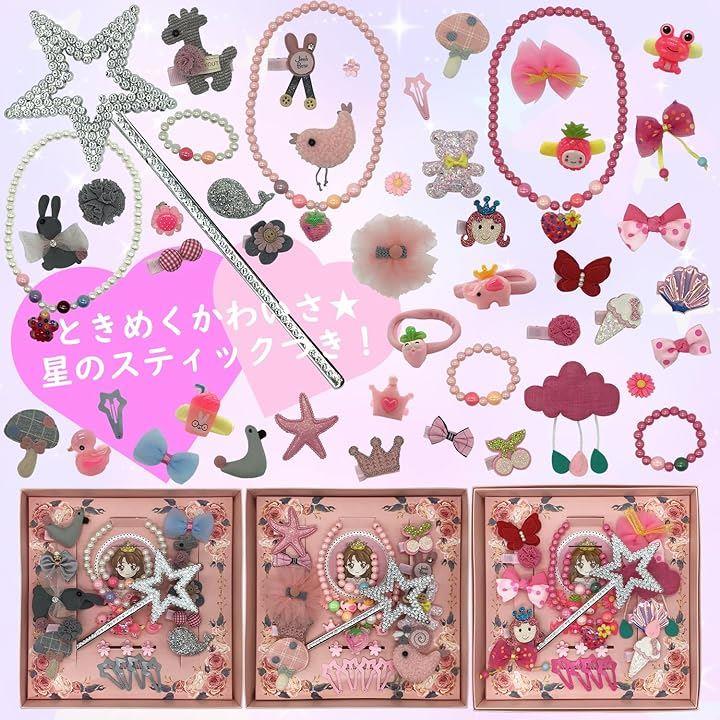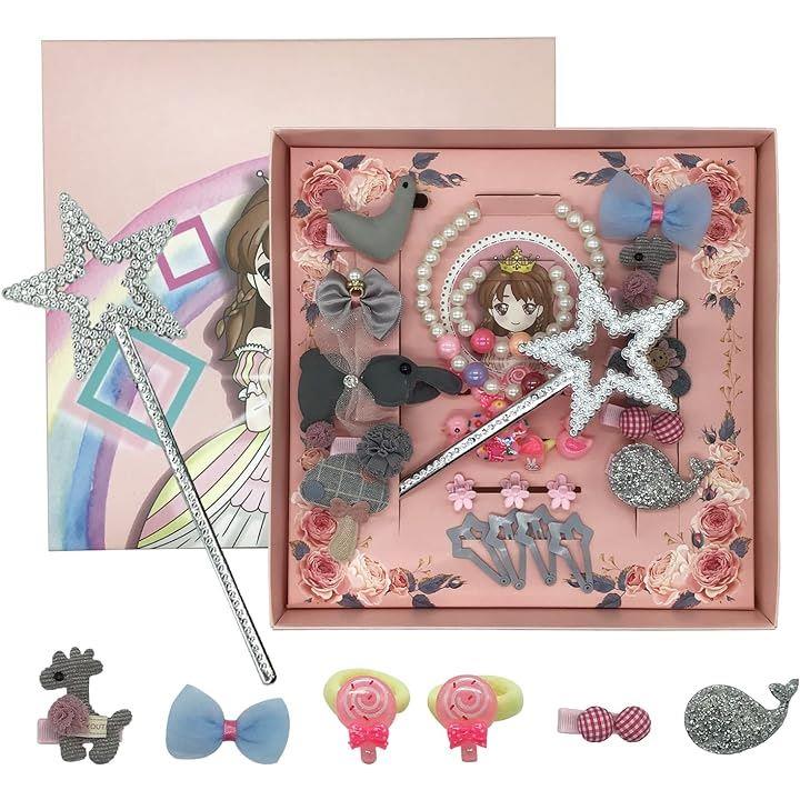 アクセサリーボックス 28点セット 星のステッキ付き こども プレゼント 紙袋有 ヘアクリップ ヘアピン ヘアアクセサリー 指輪