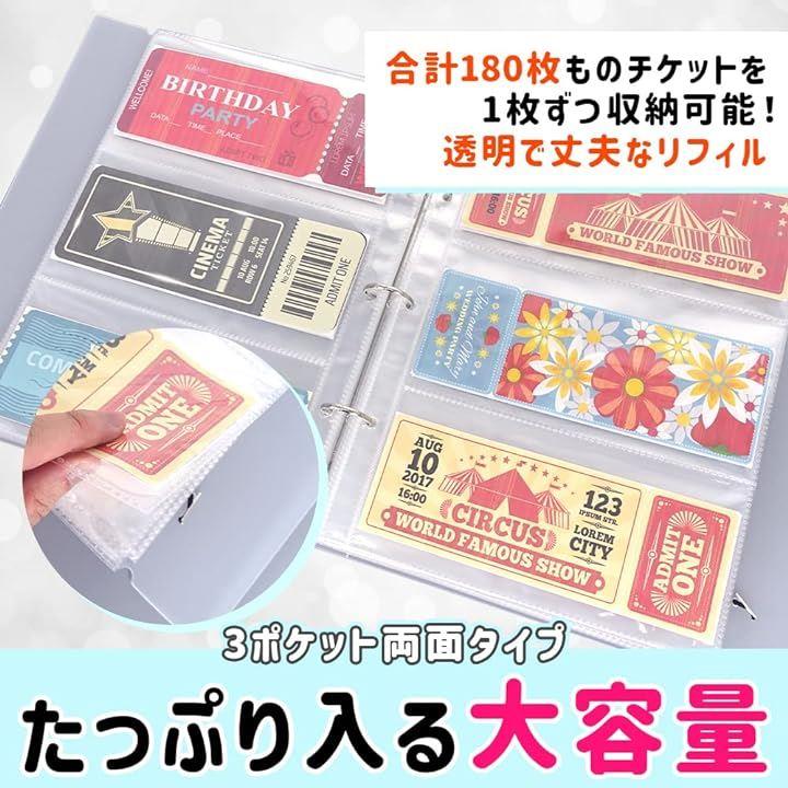 チケットホルダー リフィル30枚付き 180枚収納可能 保管 出し入れ簡単 リング式 半券 旅行券
