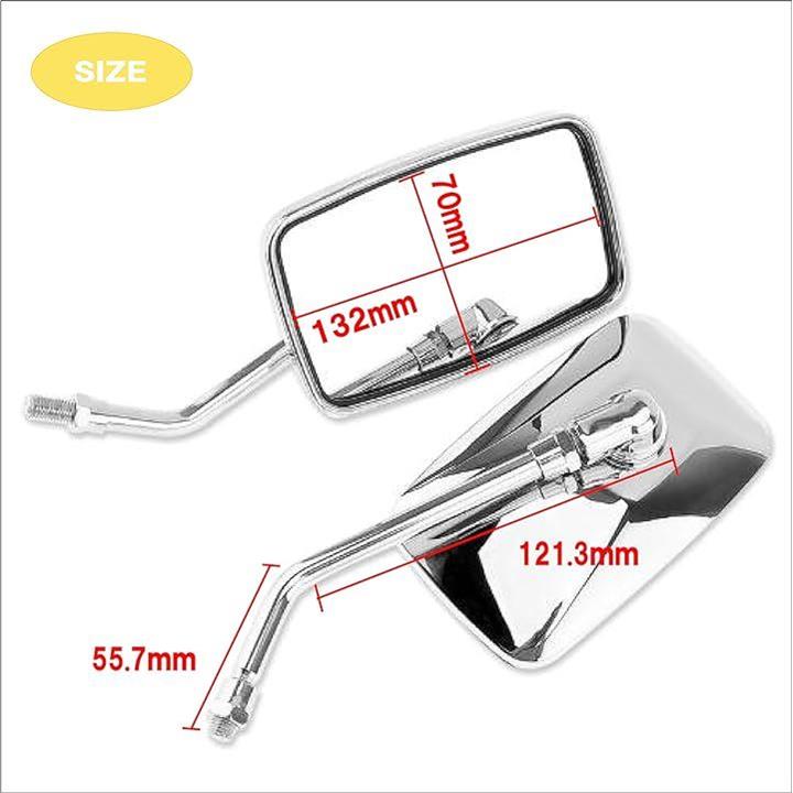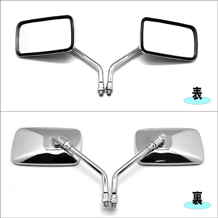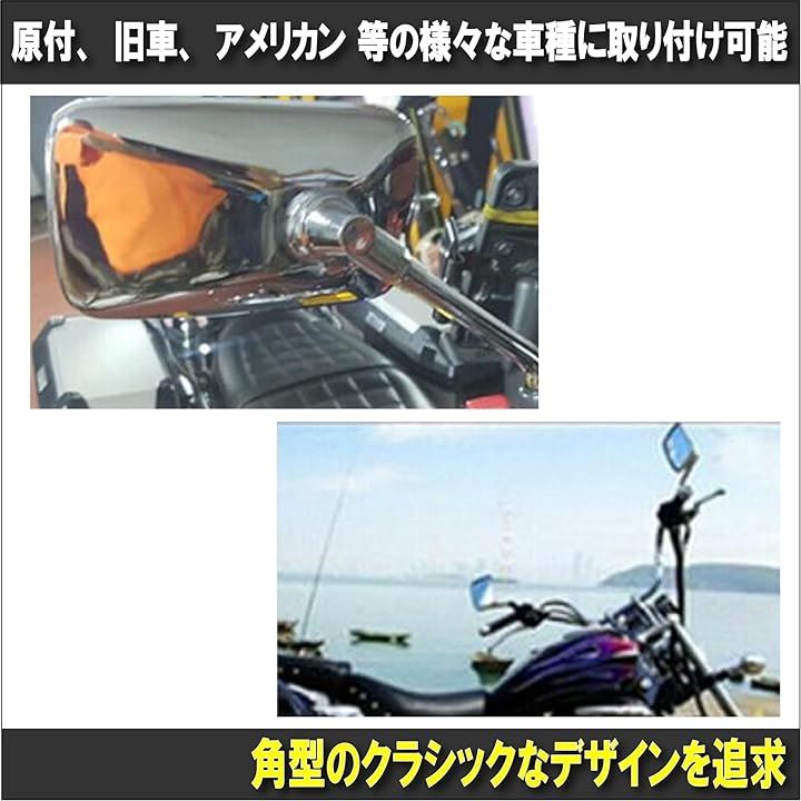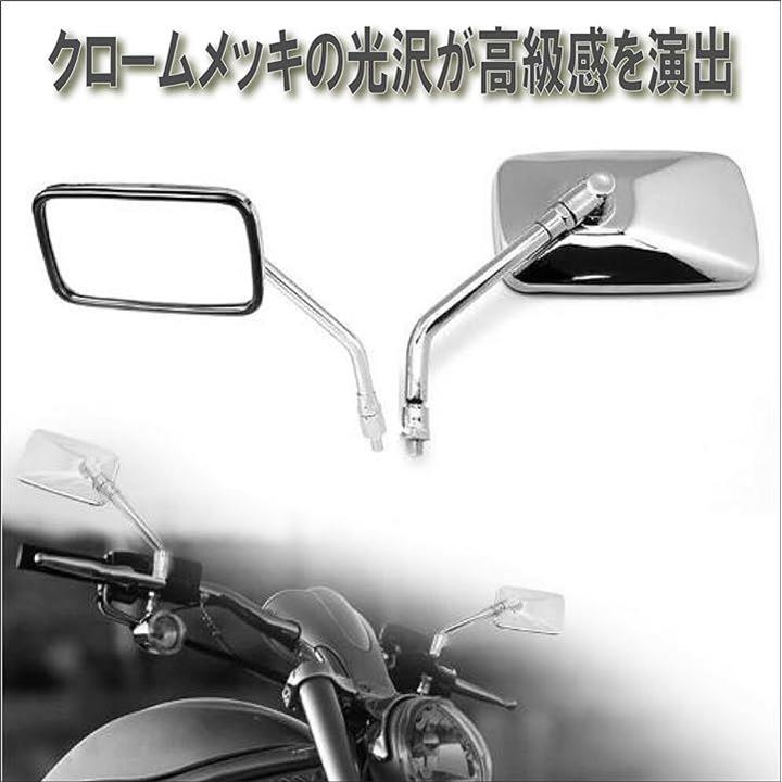 互換品バイク 角型 クラシック タイプ クロームメッキ ミラー 正ネジ 10mm ゼファー Z2 CBX400F CB250 CB400 フォア クラブマン グロム セロー クロス カブ モンキー ゴリラ タクト DIO NSR 等 左右セット