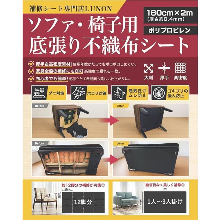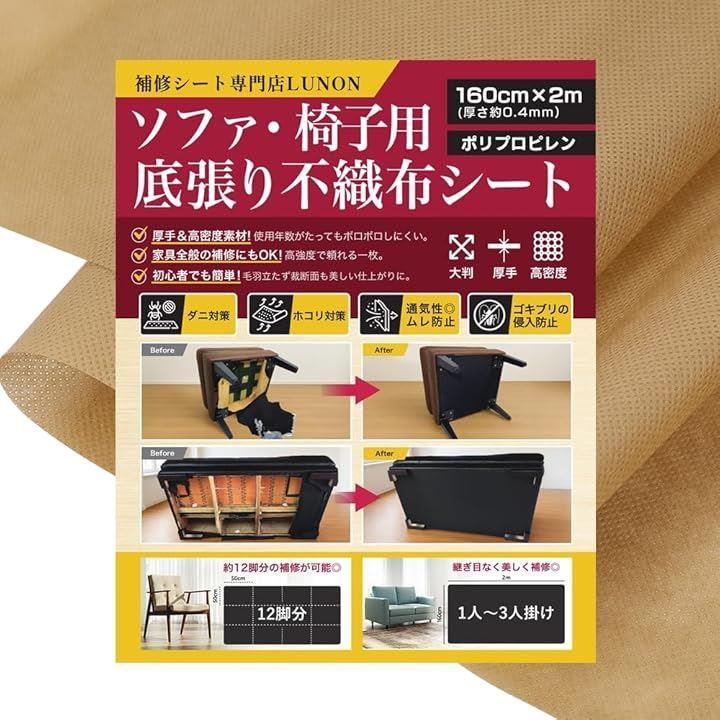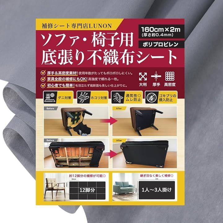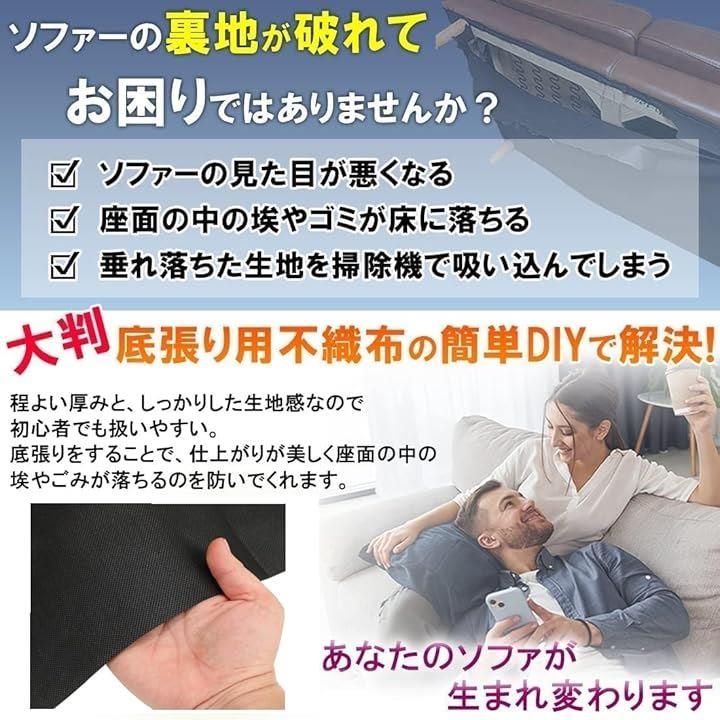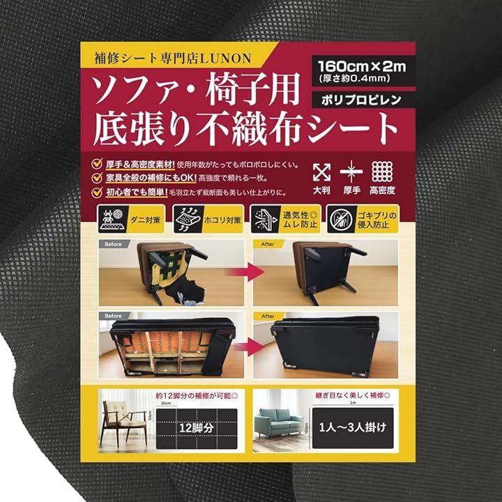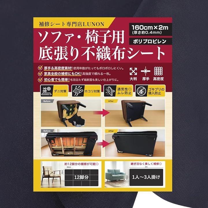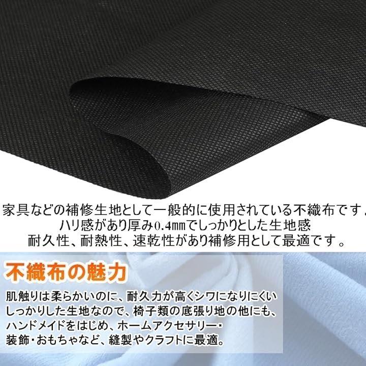 不織布 黒 大判 生地「手芸/椅子/ソファ 裏地 張り替え 用 」「幅160cm 厚さ 0.4mm」張替え セット 裏生地 シート キット 補修 DIY 布 張り替え 黒布 黒い布 |