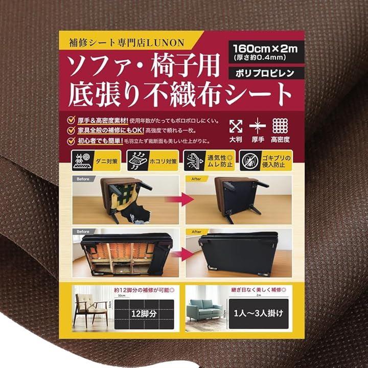 不織布 大判 生地「ブラウン / 手芸/椅子/ソファ 裏地 張り替え 用 」「幅160cm x 2m 厚さ 0.4mm」張替え セット 裏生地 シート 茶色