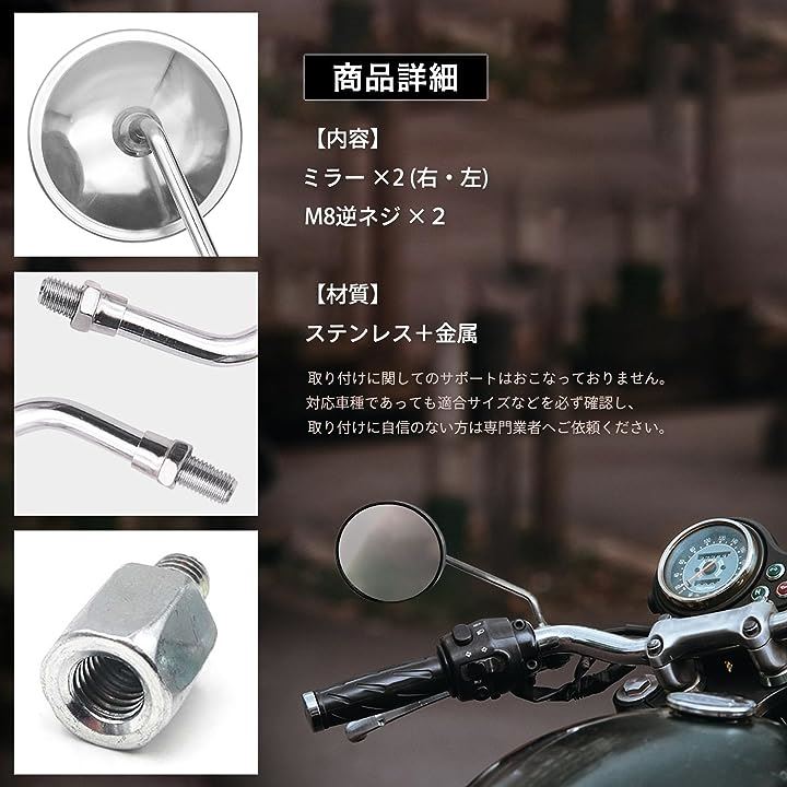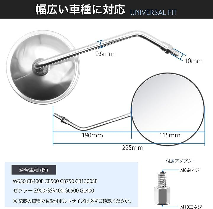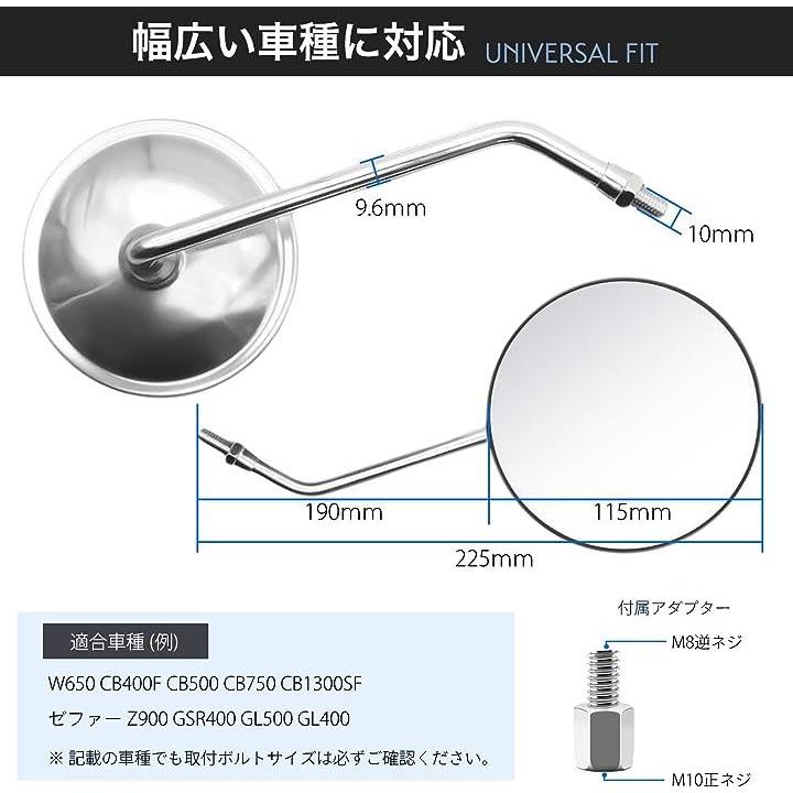 メッキ 8mm 凸面鏡 汎用 CB GS GT GL RG CBX CBR XJ シルバー