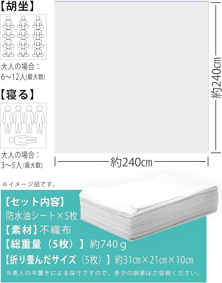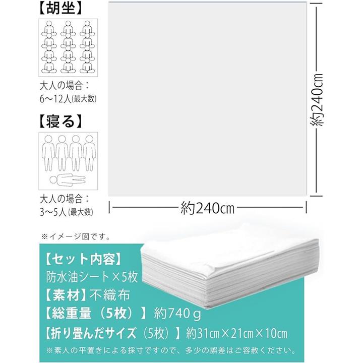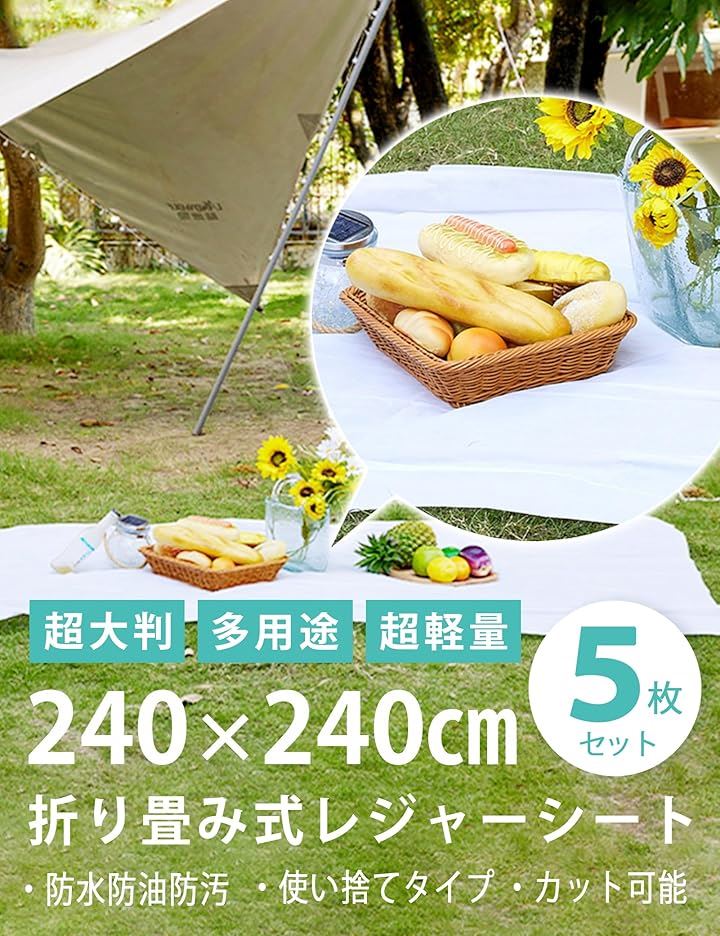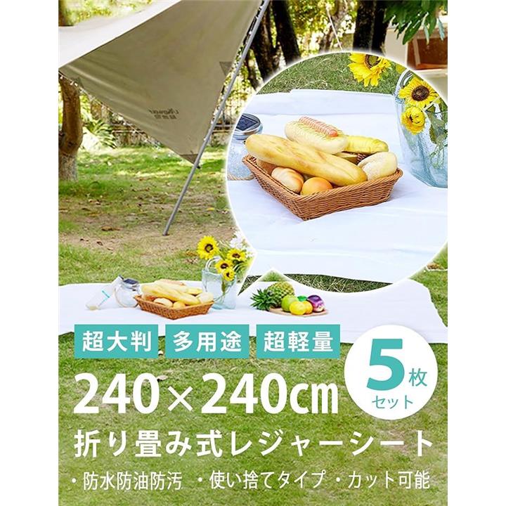 レジャーシート 使い捨て 防水防油 240x240cm 5枚セット ピクニックシート 大判 キャンプマット 海 花火大会