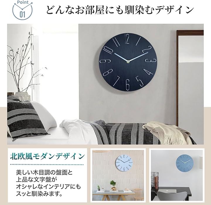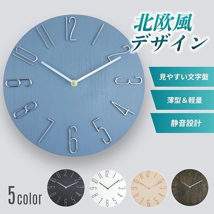 この北欧風壁掛け時計は、デザイン性と機能性を両立させたアイテムです。