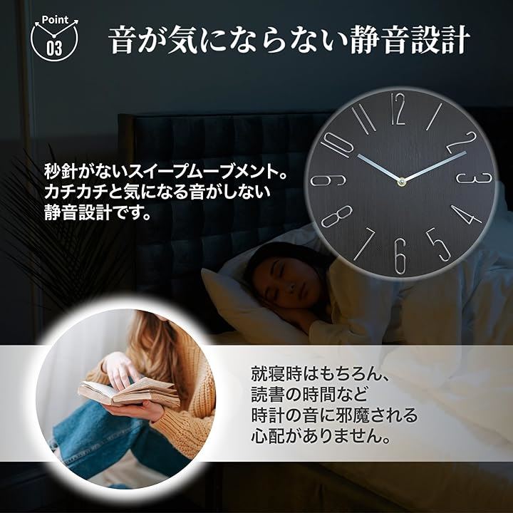 「静寂を提供する静音設計」 この壁掛け時計の魅力の一つは、その静音設計です。