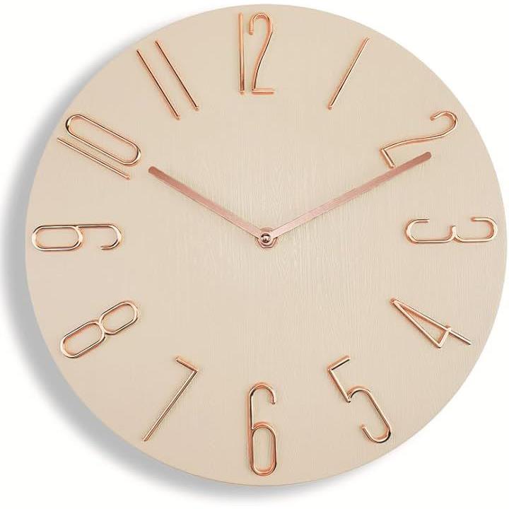 [スプレンノ] 掛け時計 時計 壁掛け 壁掛け時計 壁時計 北欧 木目調 静音 シンプル 静か 直径30cm (ベージュ) |