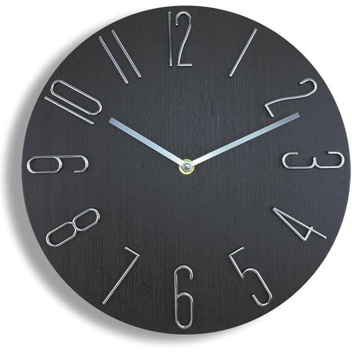 [スプレンノ] 掛け時計 時計 壁掛け 壁掛け時計 壁時計 北欧 木目調 静音 シンプル 静か 直径30cm (ブラック) |