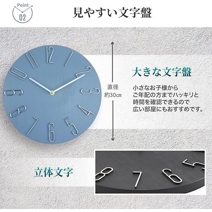 [スプレンノ] 掛け時計 時計 壁掛け 壁掛け時計 壁時計 北欧 木目調 静音 シンプル 静か 直径30cm (グレイッシュブルー) |