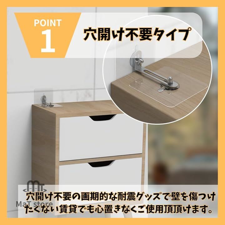 家具 転倒防止 地震 落下防止 家具固定 穴あけ不要 金具 棚 賃貸 透明 8個セット