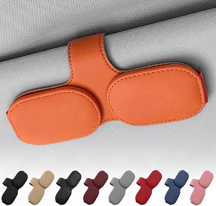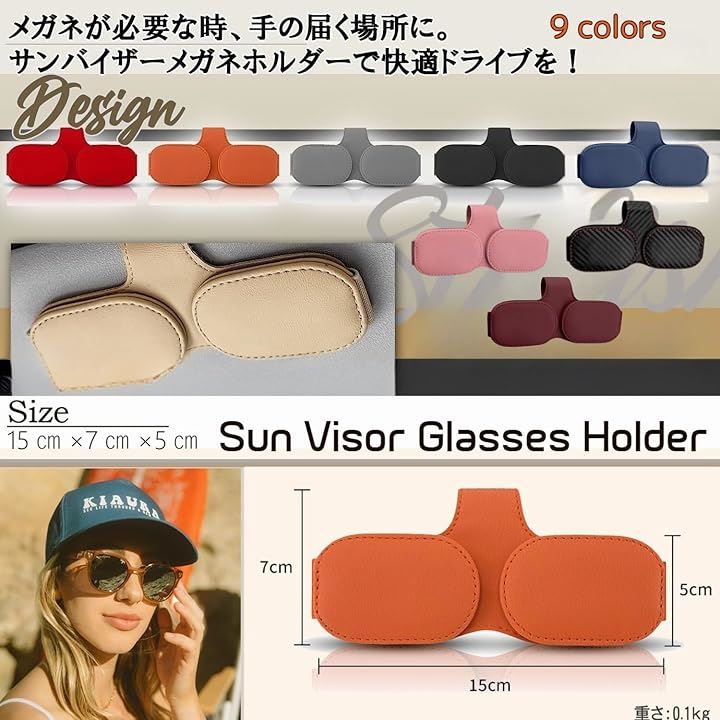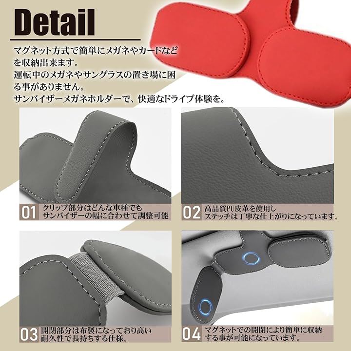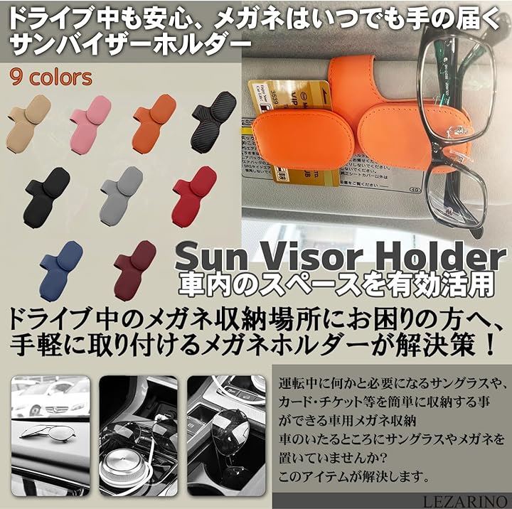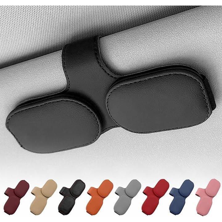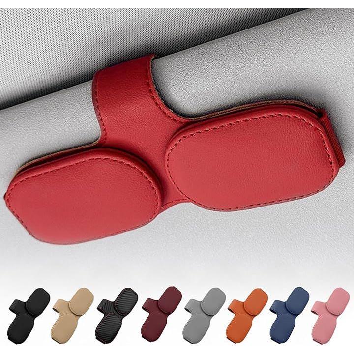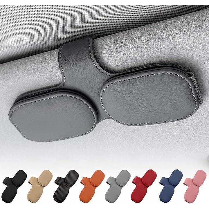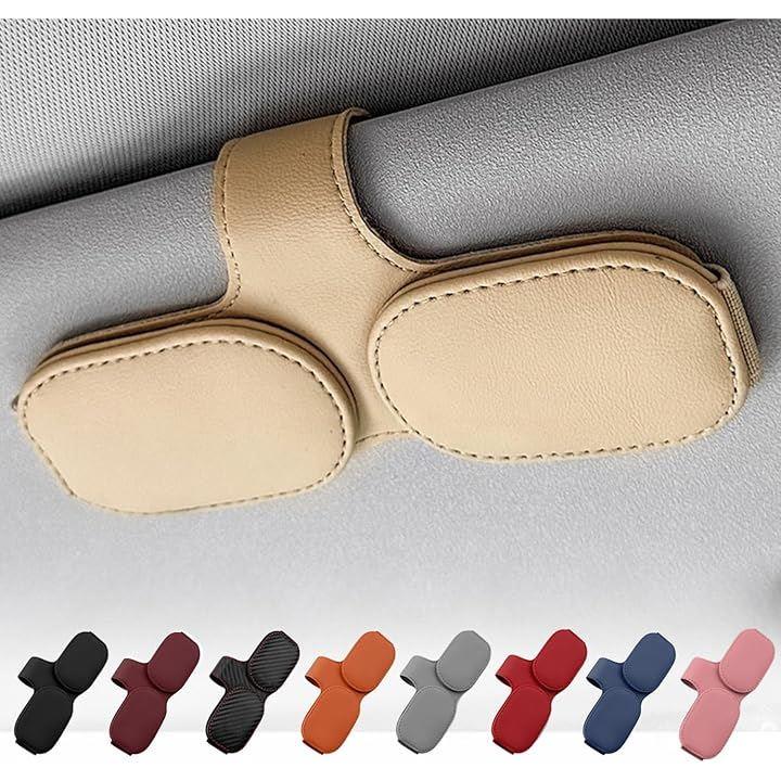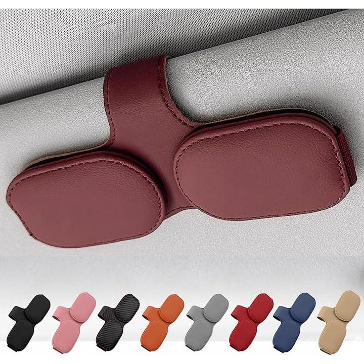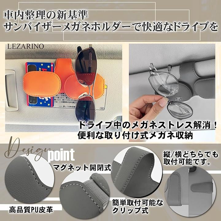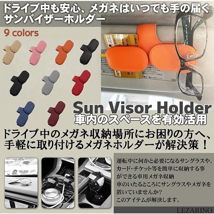 サングラスホルダー 車用 サンバイザー取付 メガネホルダー レザー調 カード収納