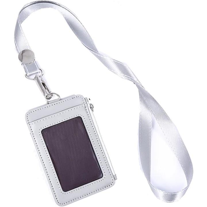 AllBright IDカードホルダー パスケース 牛革 縦 2枚収納 シルバー 首掛け 社員証