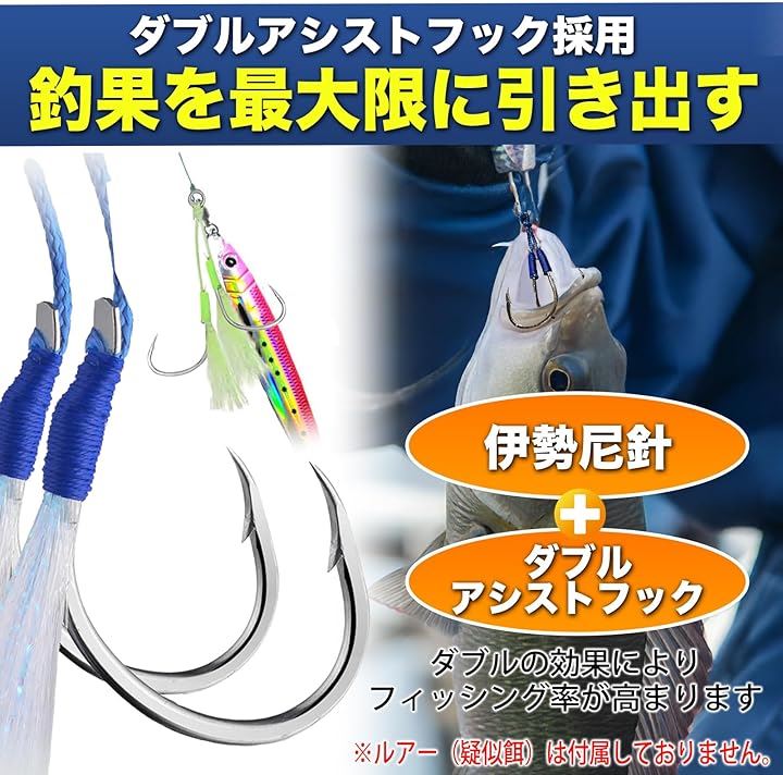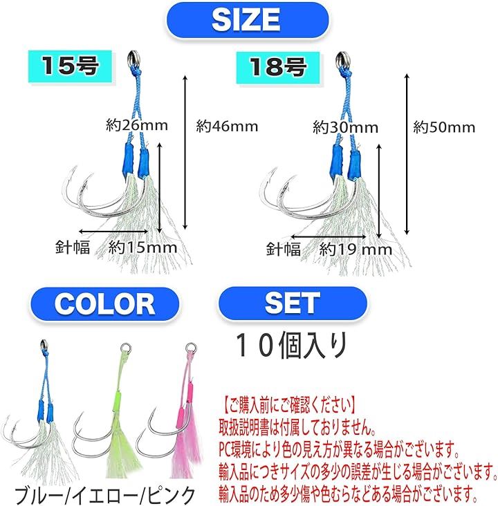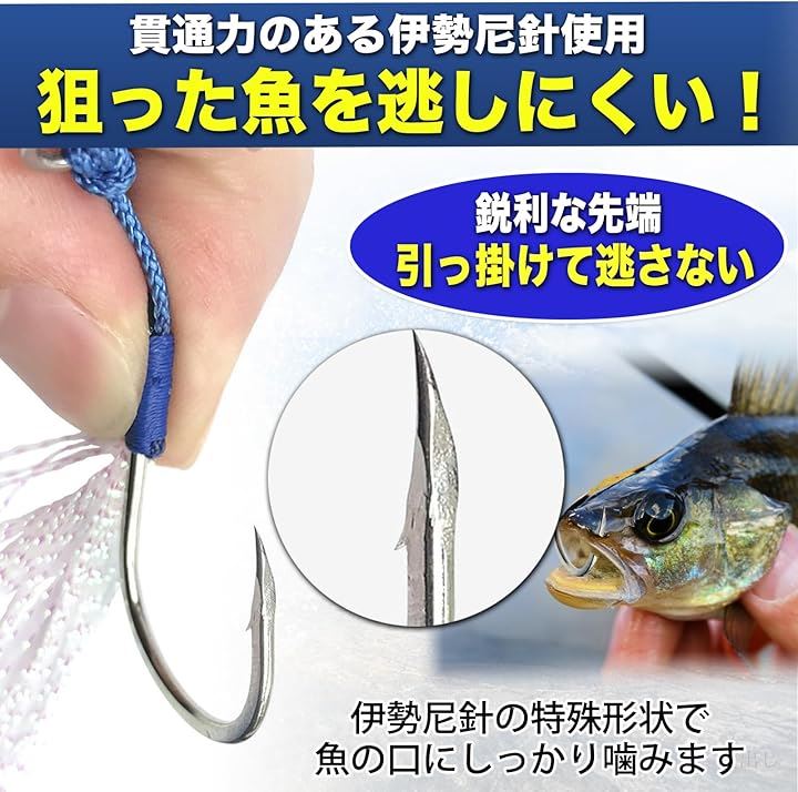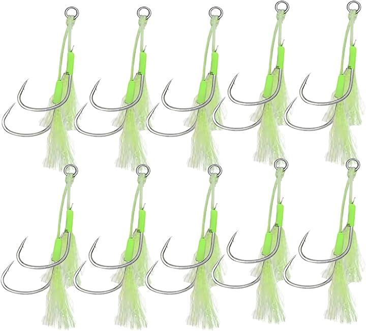 釣り ダブル フック アシスト 針 スプリット ルアー フェザー ソルト アジング ティンセル ジグ フィッシング 伊勢尼 10個