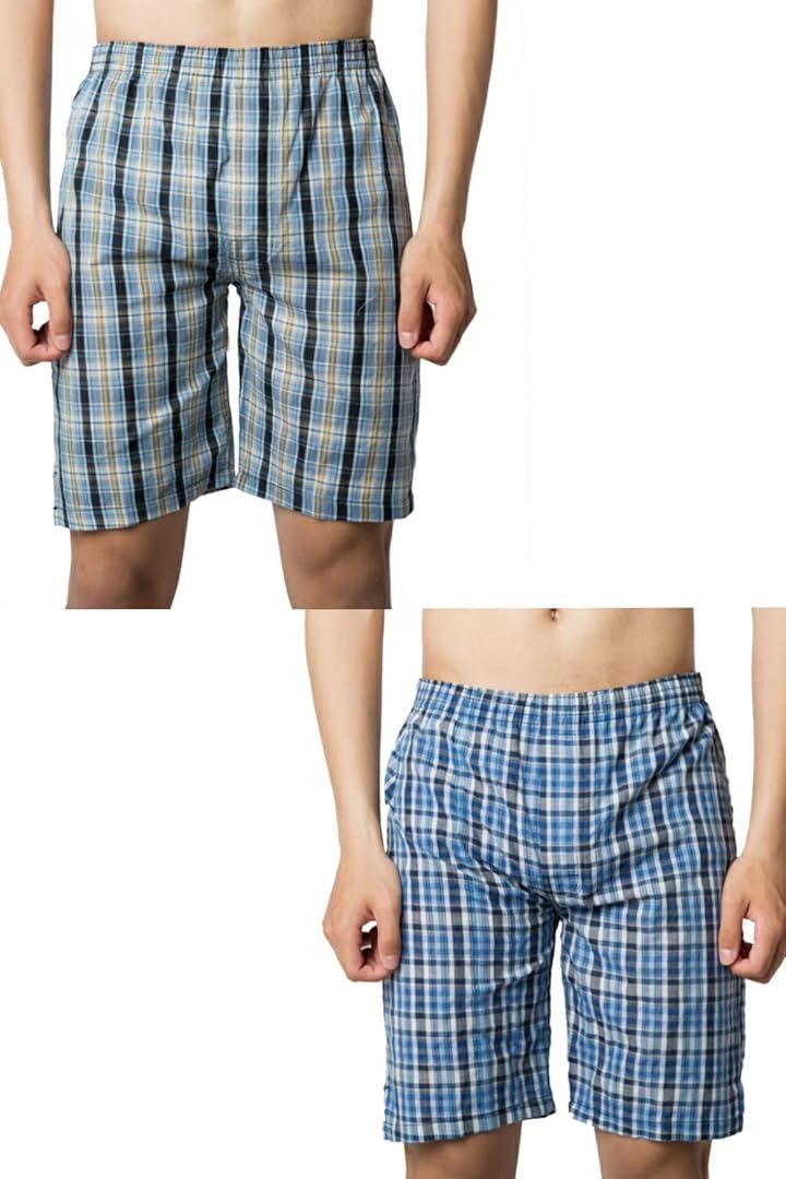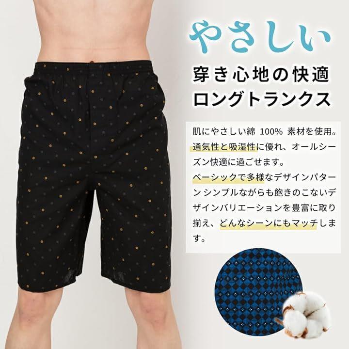 トランクス 5分丈 メンズ ロング パンツ ランダムセット 下着 前閉じ インナー アンダーウェア チェック シンプル 大きいサイズ 綿100% コットン 肌着 くつろぎ リラックス 吸汗速乾 チェック2枚セットB 5Lサイズ