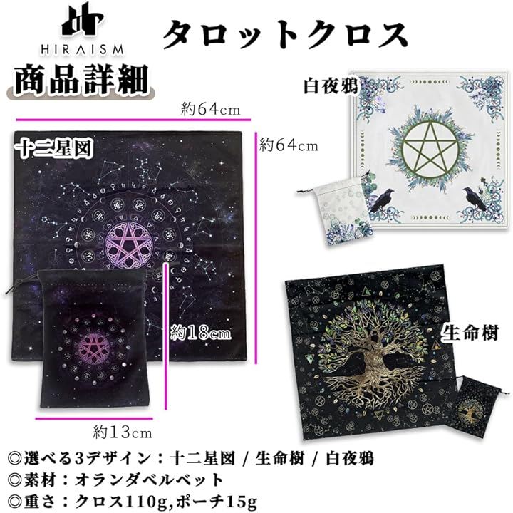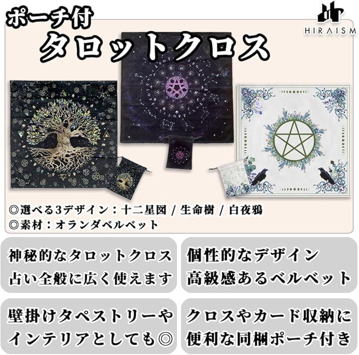 タロットクロス 占い 占星術 タロットマット タペストリー 袋付き 正方形