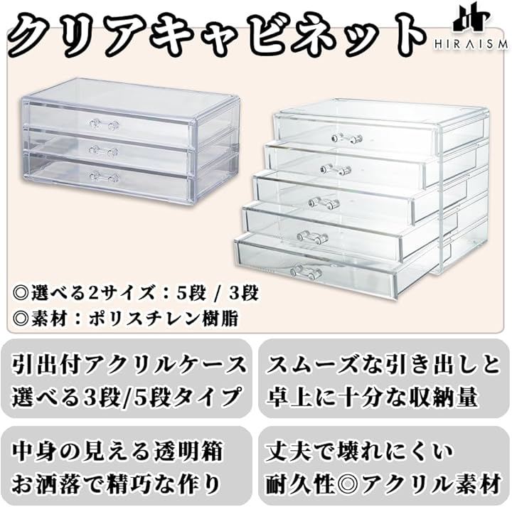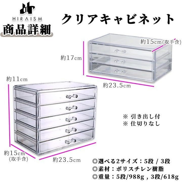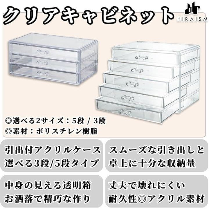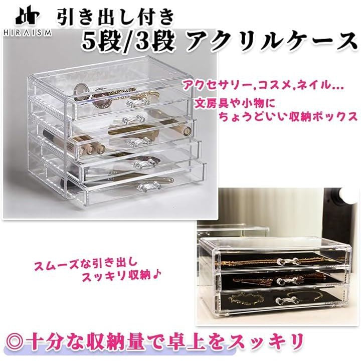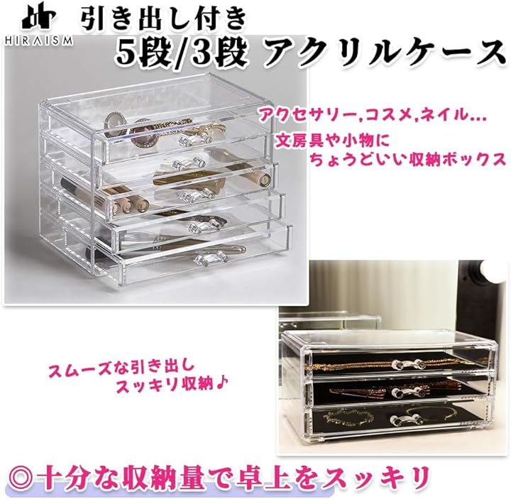 アクリルケース 引き出し 収納 アクセサリー コスメ ネイル 小物入れ 仕切りなし 大容量 クリアケース 透明