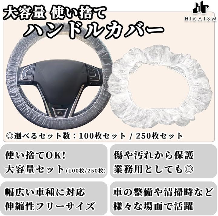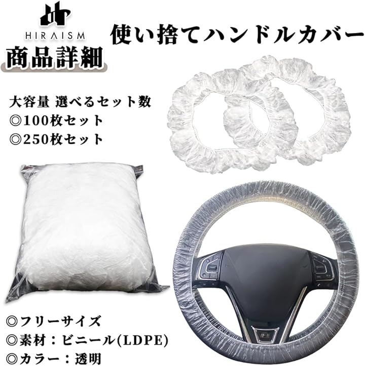 車用 ハンドルカバー 使い捨て ビニール製 大容量