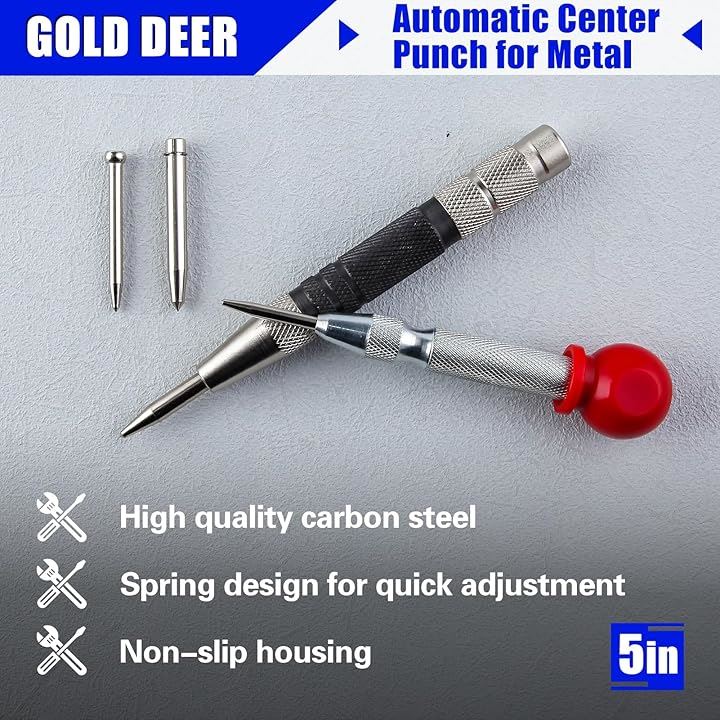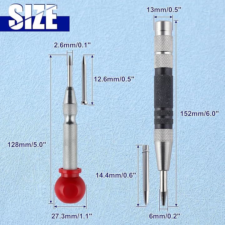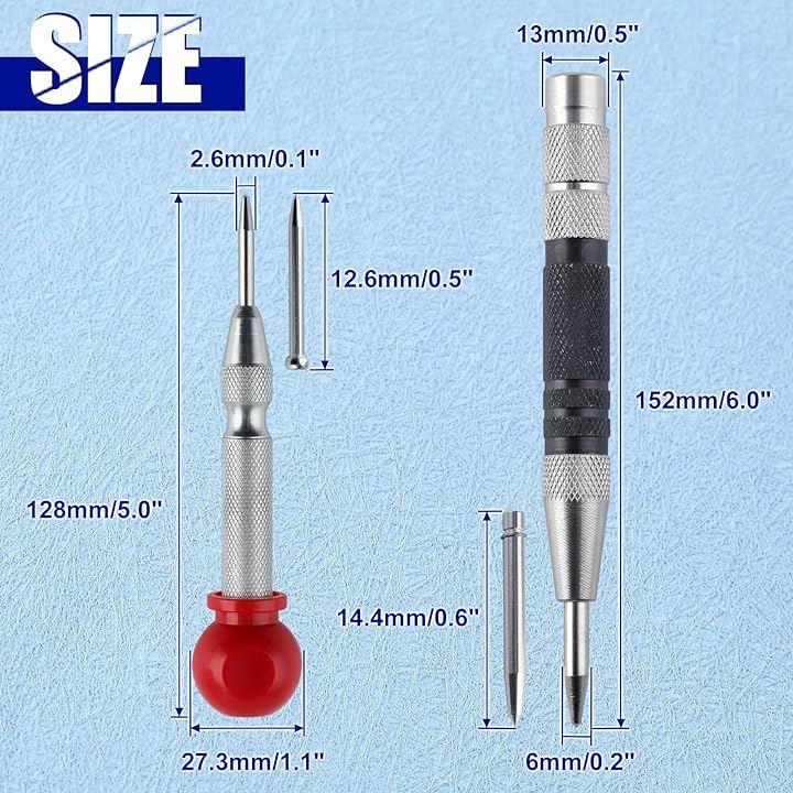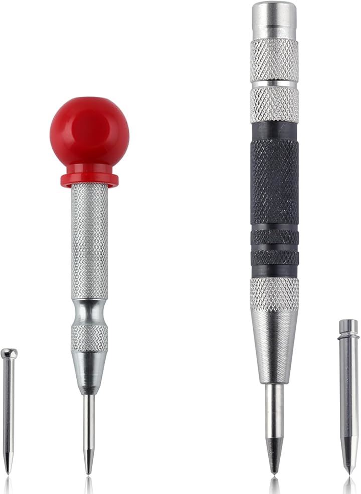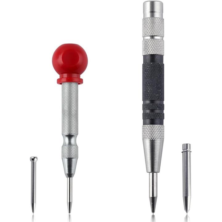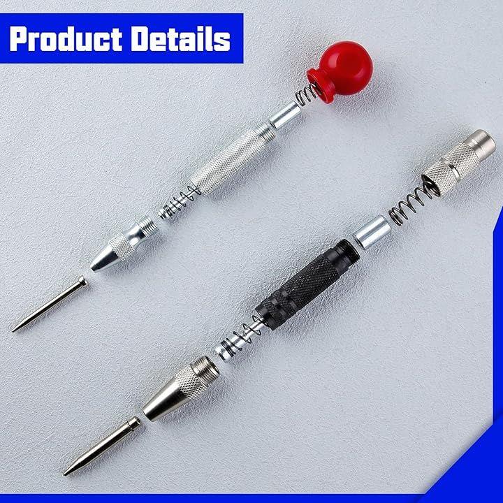 2個 自動ポンチ 自動センターパンチ オートセンターポンチ アンチロールグリップ付き自動パンチングマシン 調整可能なインパクト付きハンドツール 金属用 木材 プラスチック 窓 壁 フローリング 自動センターパンチツール センターパンチ付き