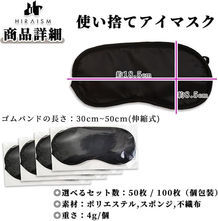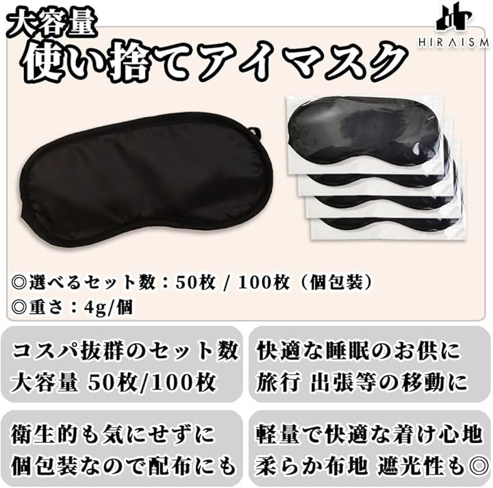 アイマスク 使い捨て 個包装 睡眠用 安眠 遮光 衛生的 旅行 出張 軽量 業務用 男女兼用 100個セット