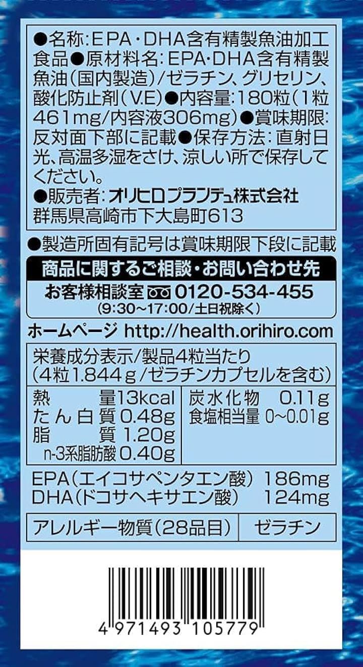 フィッシュオイル EPA/DHA 180粒 お徳用 お試し 常備用 特製開封日シール付き