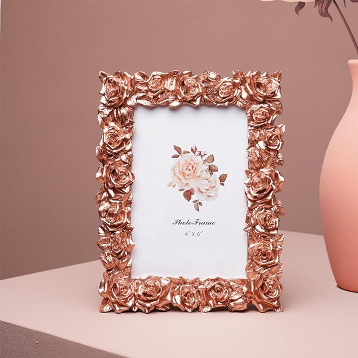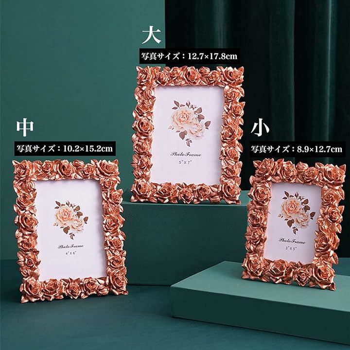 フォトフレーム 薔薇 ローズ 写真立て おしゃれ ピンクゴールド インテリア 飾り 装飾 かわいい 写真たて 華やか バラ