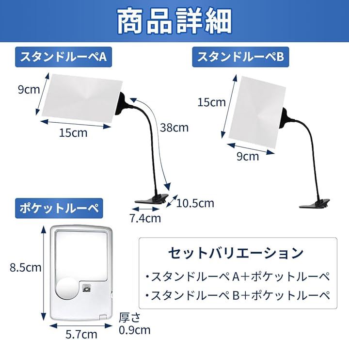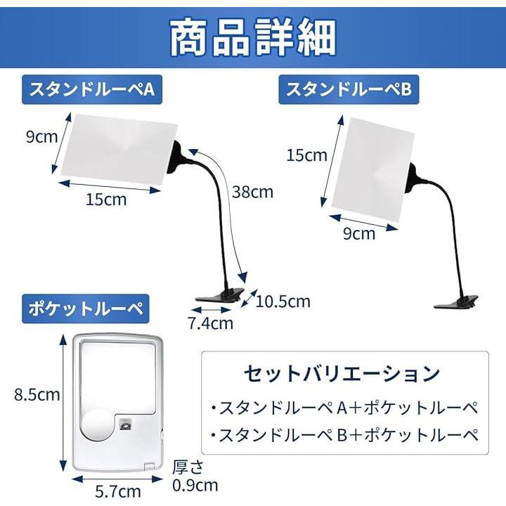 スタンドルーペ 5倍 ポケットルーペ 3倍&6倍 拡大鏡 ライト付き 眼鏡 読書