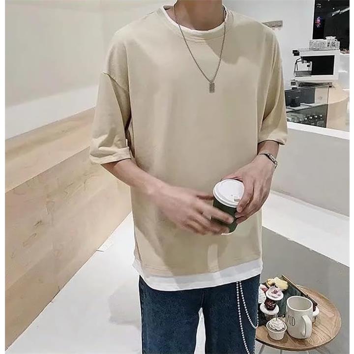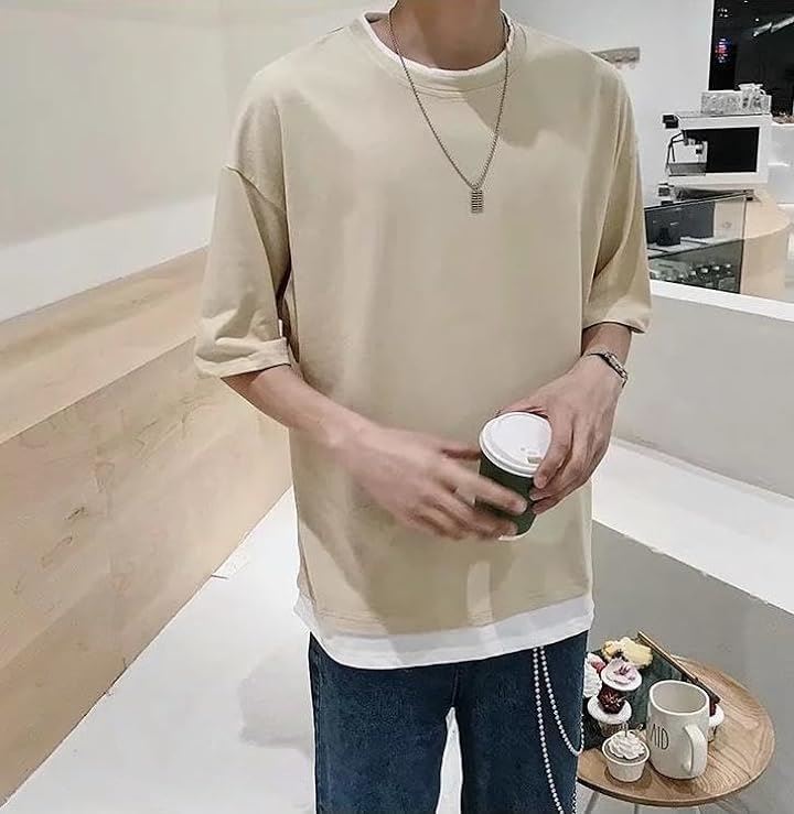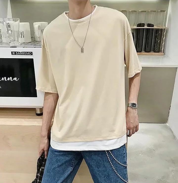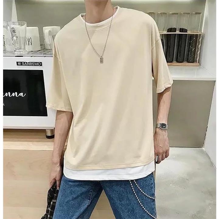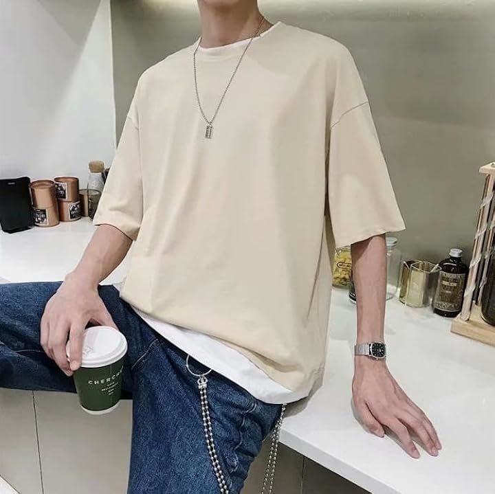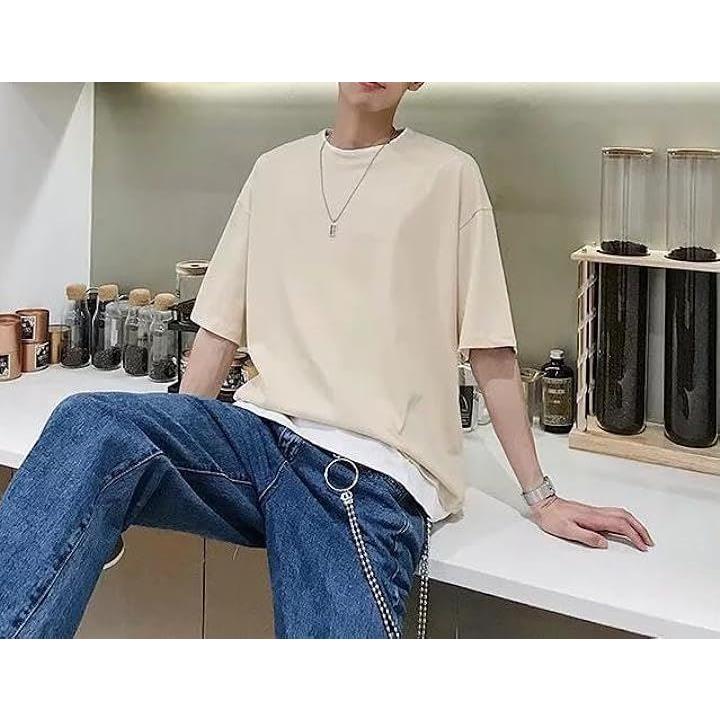 [エンプティオ] 無地 カットソー ビッグシルエット tシャツ 半袖 メンズ 韓国 クルーネック トレーナー ロングtシャツ スリム 大きいサイズ スポーツ 速乾 |