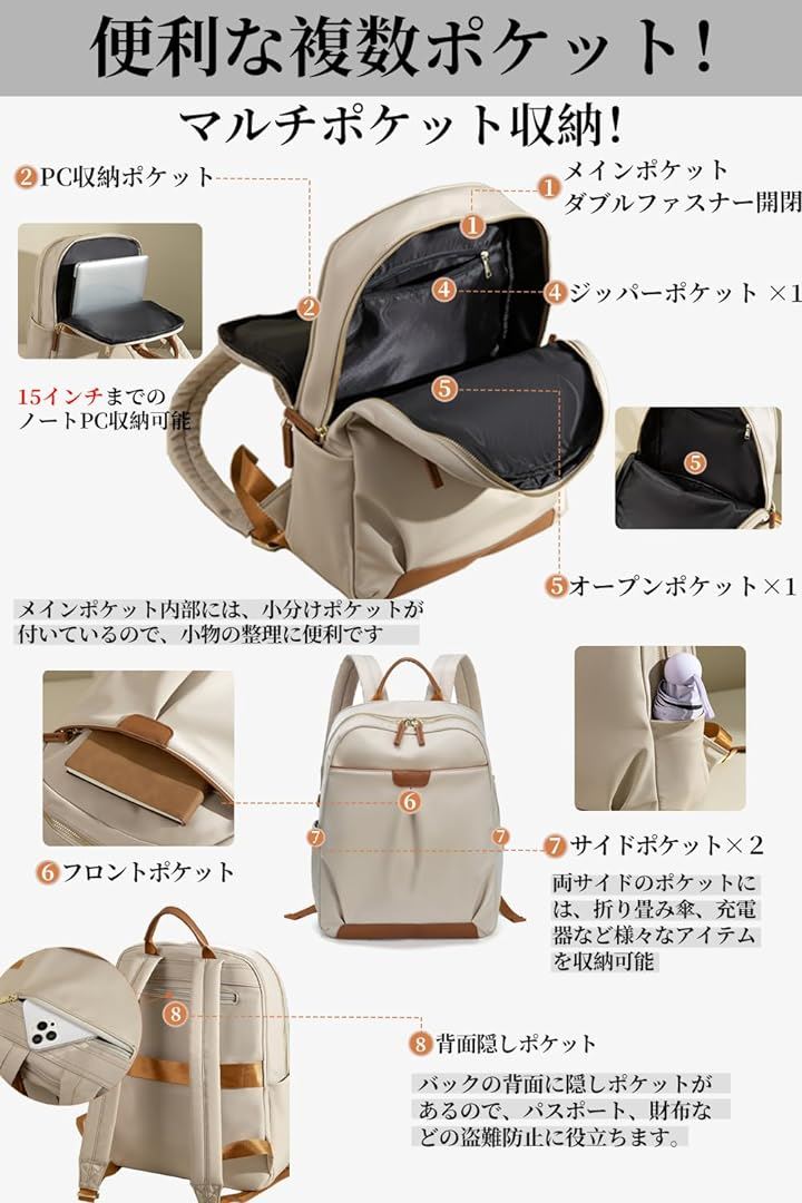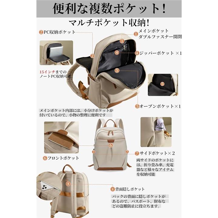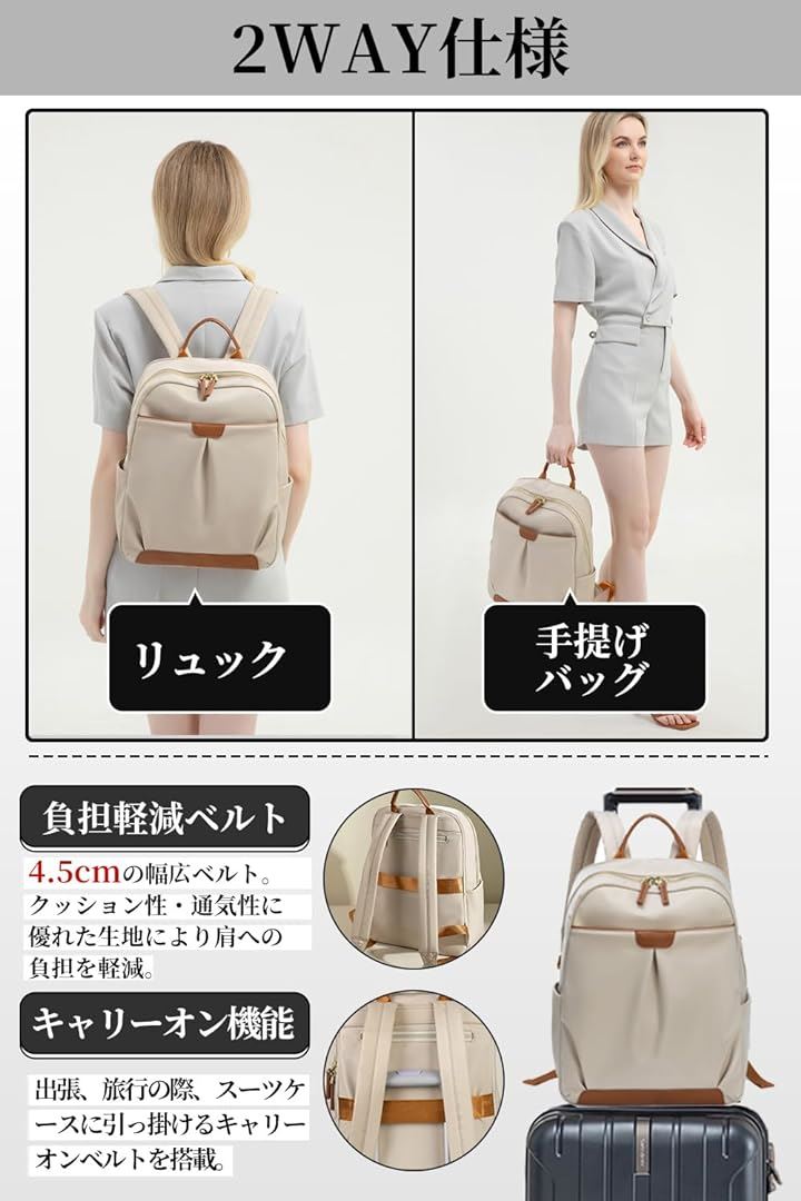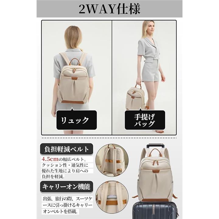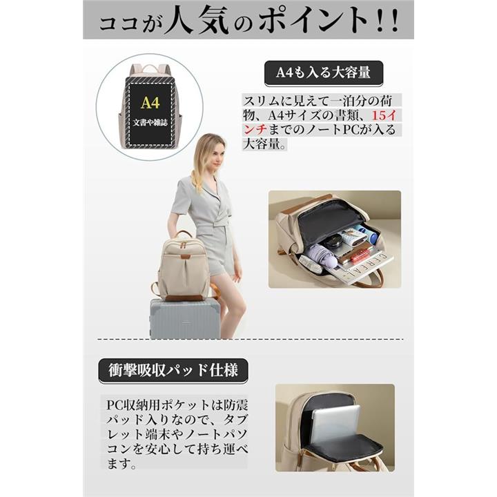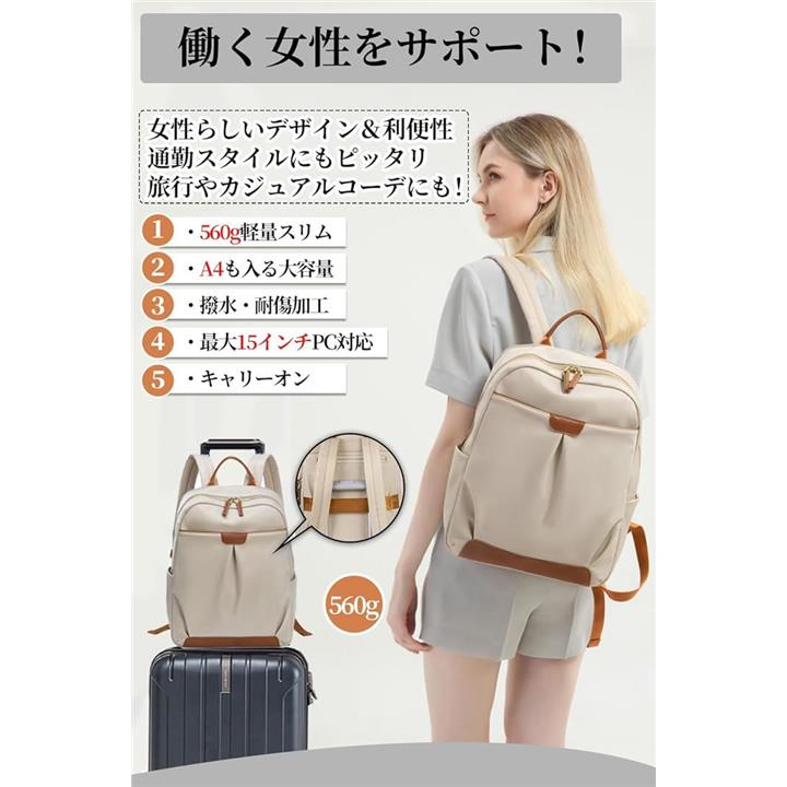 PCリュック レディース ビジネスリュック PC収納 パソコンリュック A4 15インチPC対応 キャリーオン機能 背面ポケット 撥水・耐傷
