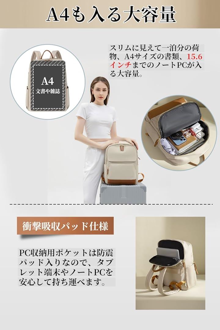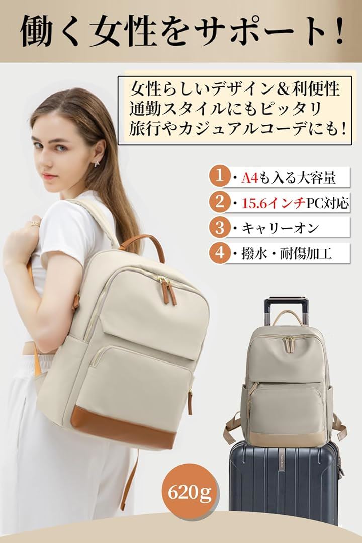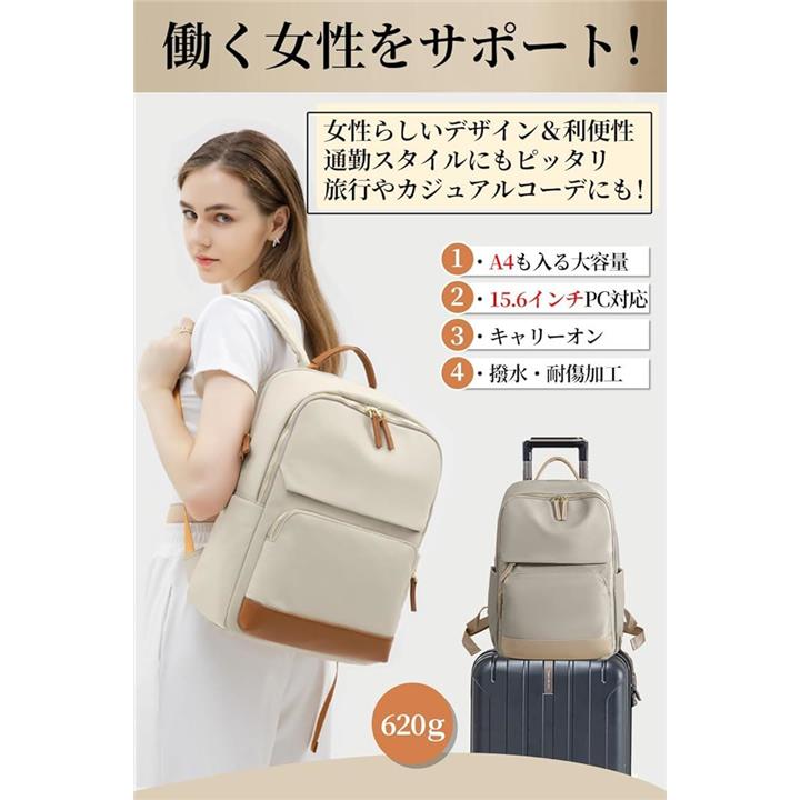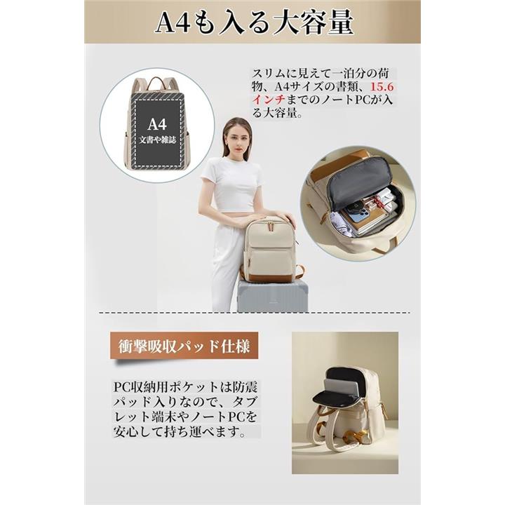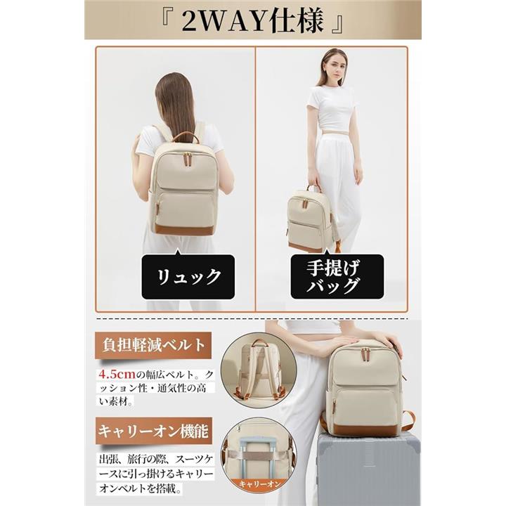 PCリュック レディース ビジネスリュック PC収納 パソコンリュック 大容量 A4 15.6インチPC対応 キャリーオン機能 背面ポケット 撥水・耐傷
