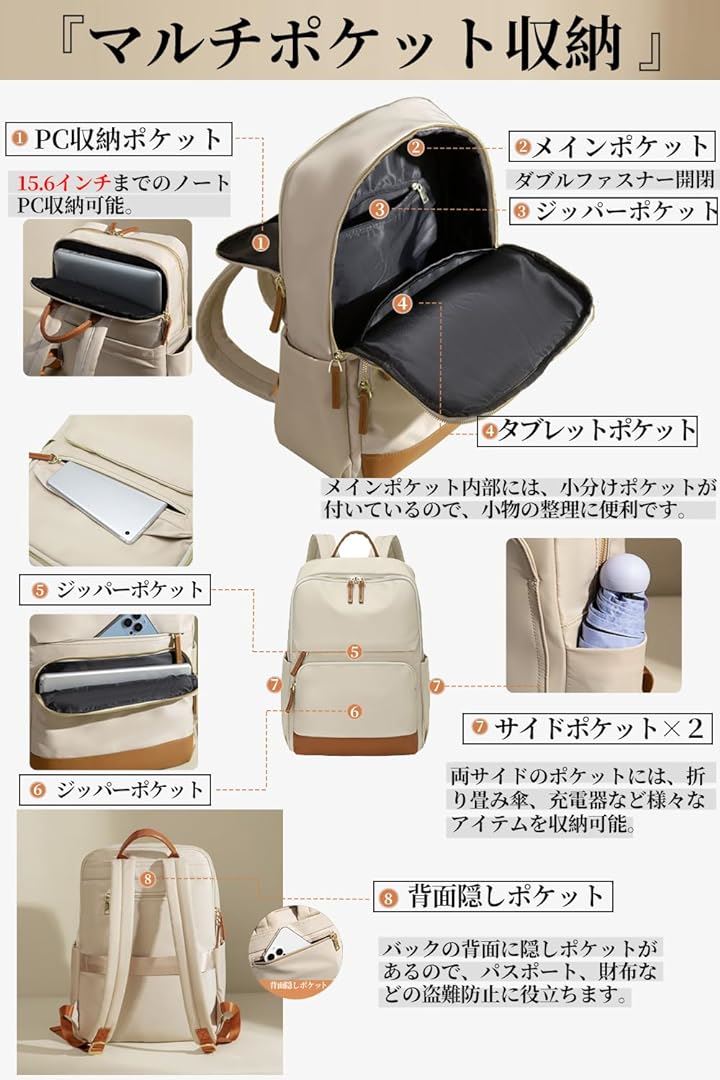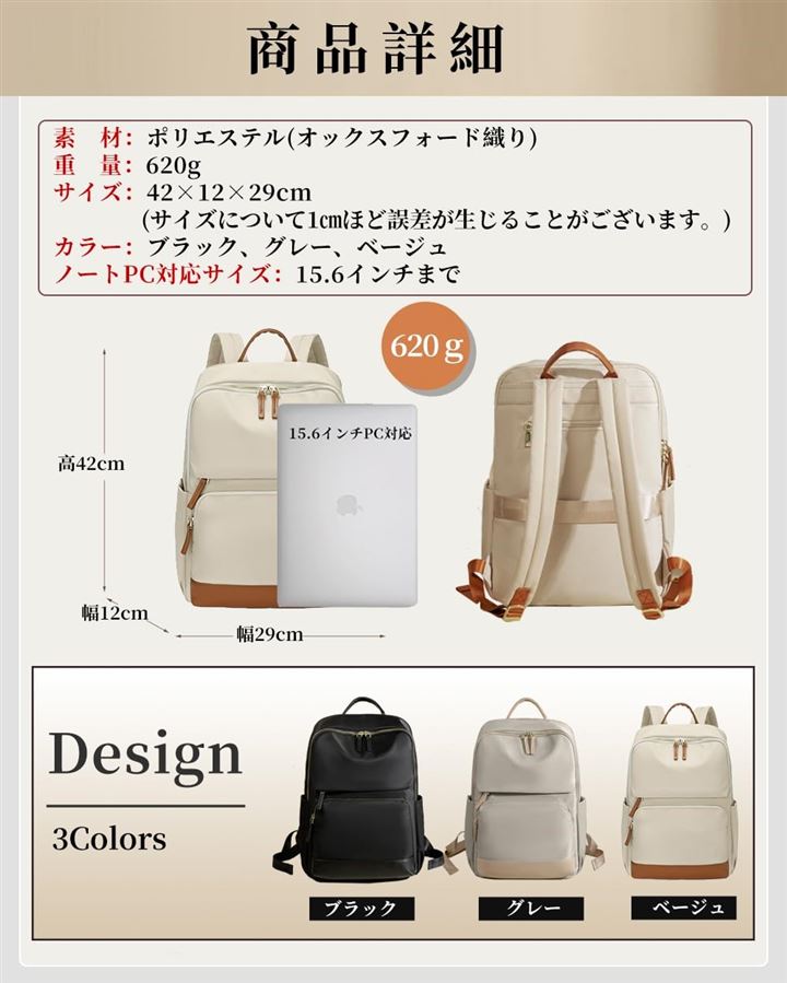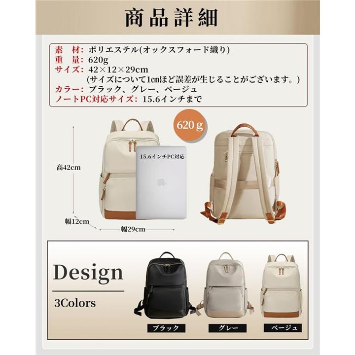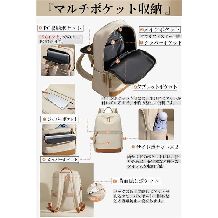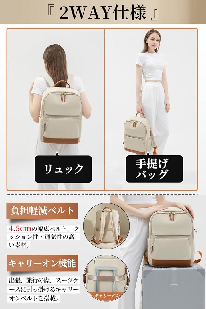 PCリュック レディース ビジネスリュック PC収納 パソコンリュック 大容量 A4 15.6インチPC対応 キャリーオン機能 背面ポケット 撥水・耐傷