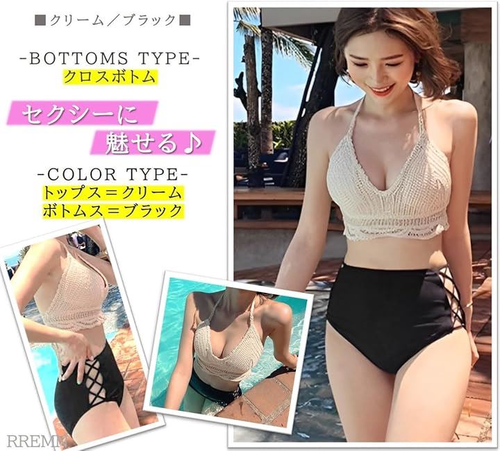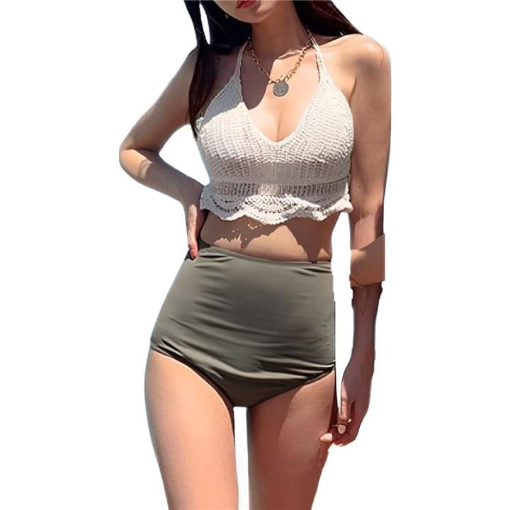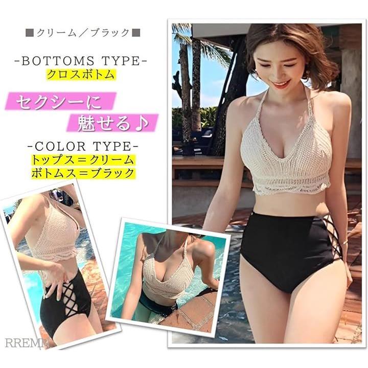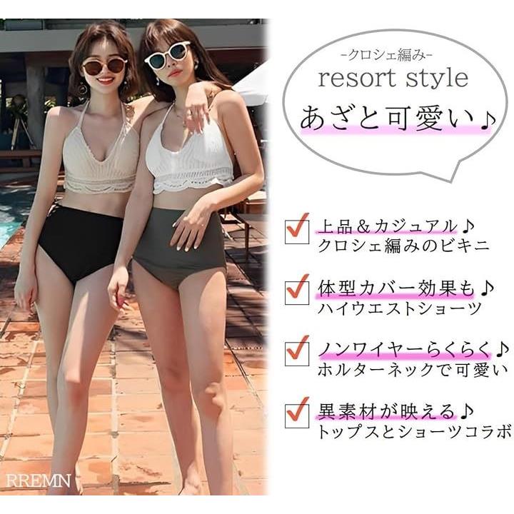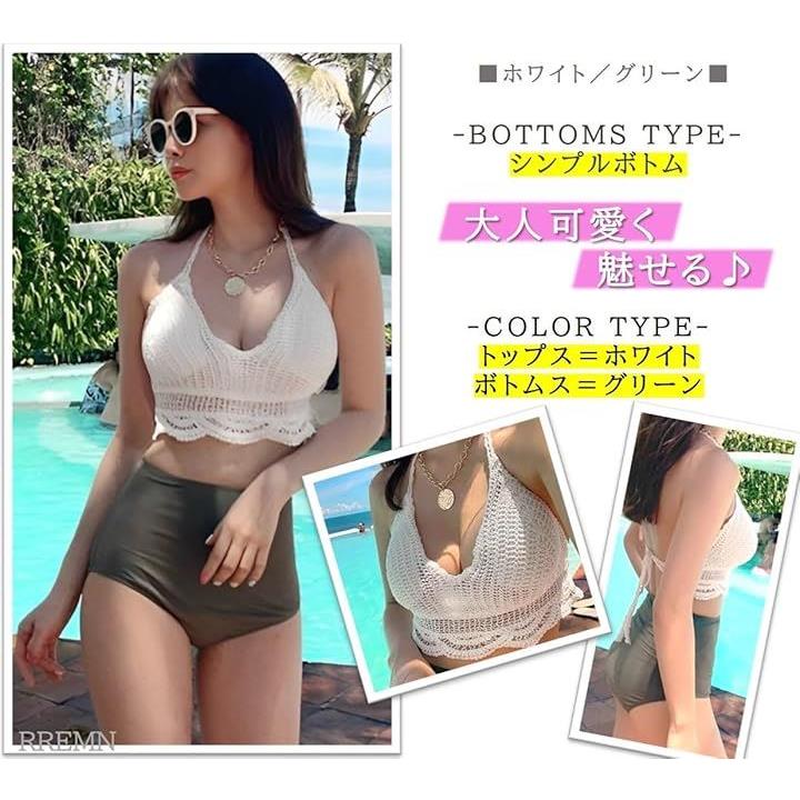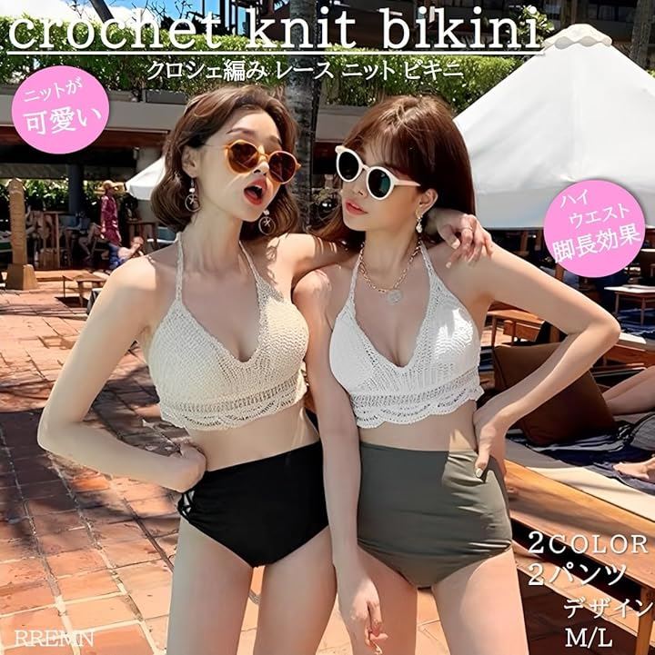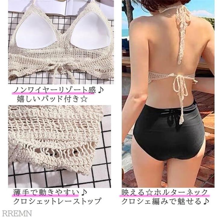 水着 レディース ビキニ 韓国 ニット かぎ編み レース ハイウエスト 2点 セット