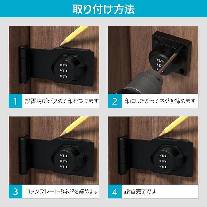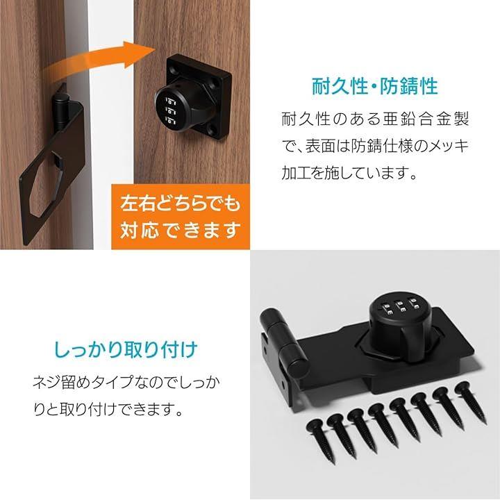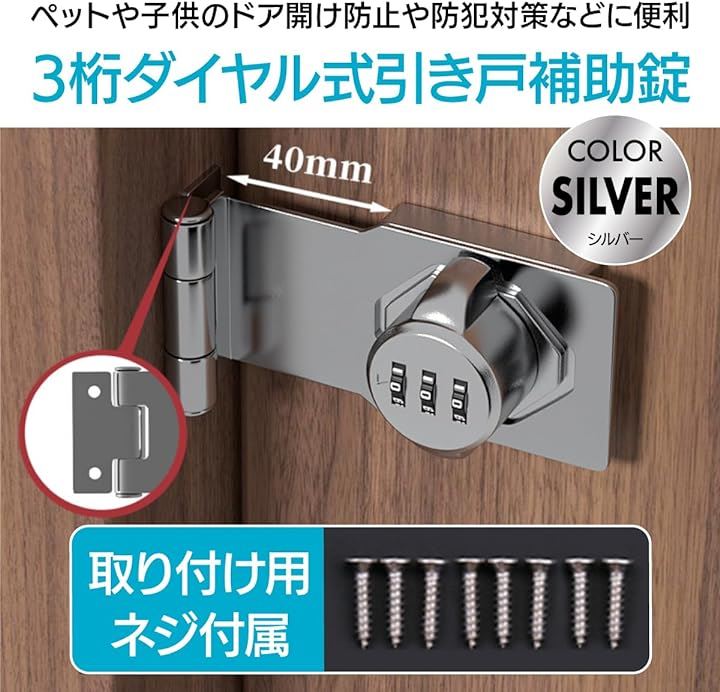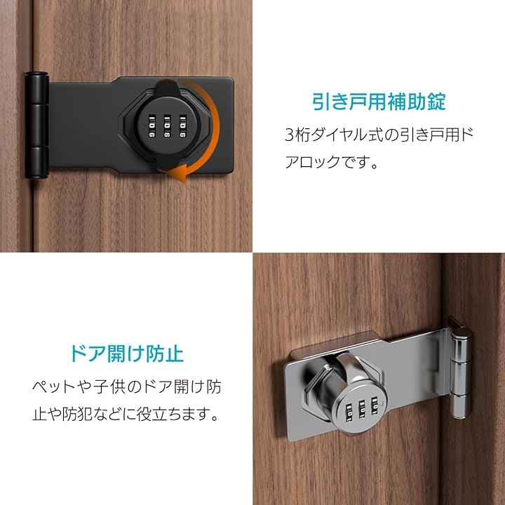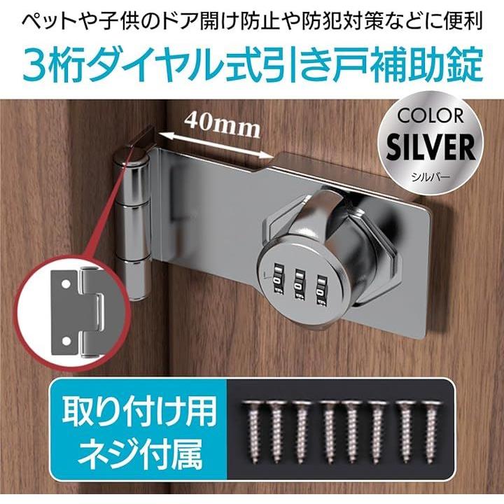 引き戸用補助錠 3桁ダイヤル式 亜鉛合金 防犯金具 90°