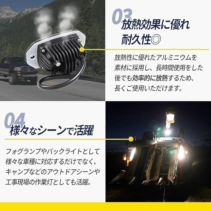フォグランプ LED作業灯 作業用 後付け 埋め込み 20W ワークライト 防水 防塵 赤 黄 白 バックライト 重機 前照灯
