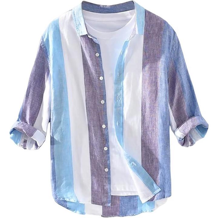アスペルシオ 七分袖 ストライプシャツ 襟付き ボタンダウン ストリート系 オシャレ トップス メンズ カジュアルシャツ サラサラ 半袖 速乾 アウトドア 涼しい 開襟 プリント リゾート