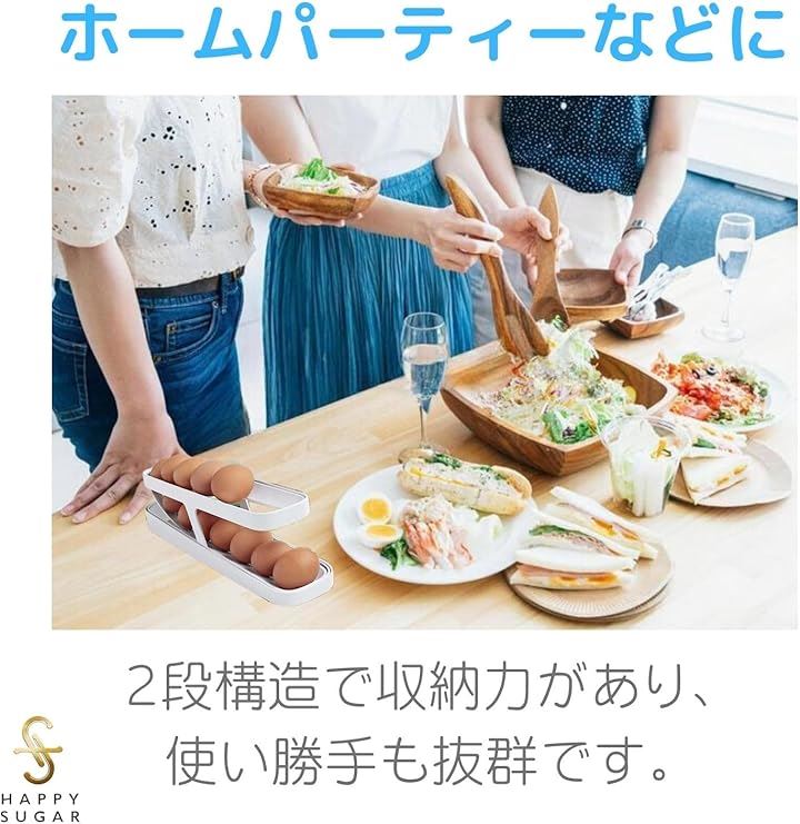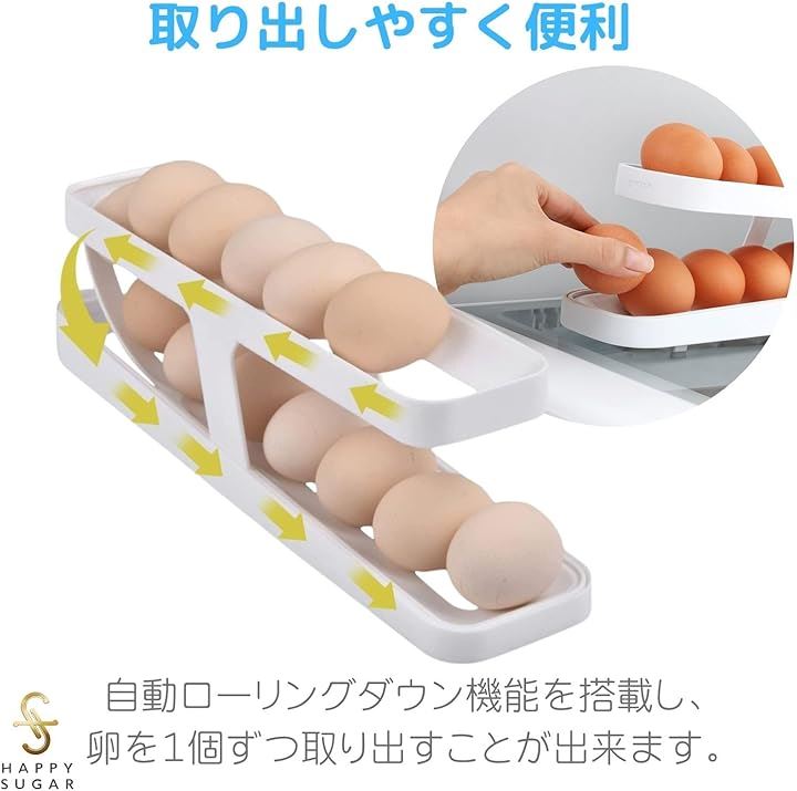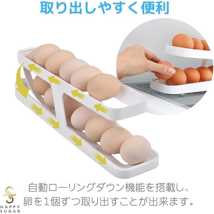 卵ストッカー たまご ケース 玉子 ラック 収納ボックス エッグホルダー 冷蔵庫 クリーン 転がし 容器2個セット