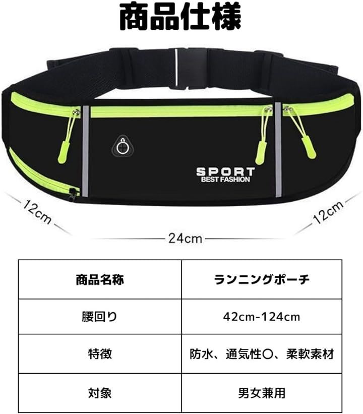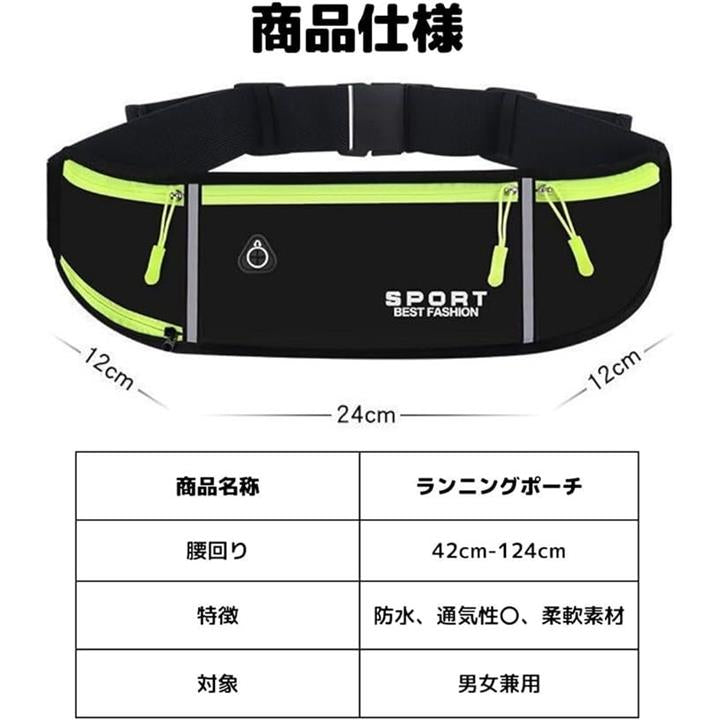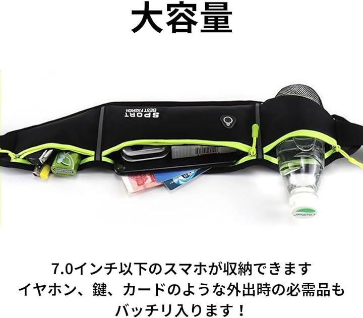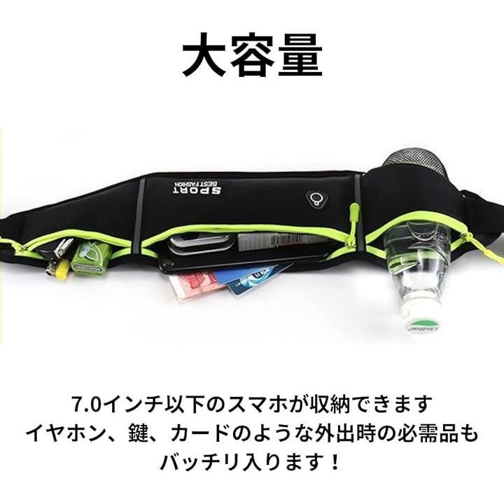 ランニング ポーチ スマホ イアホン 腰 防水 7インチ 軽量 水筒 薄型