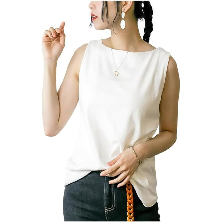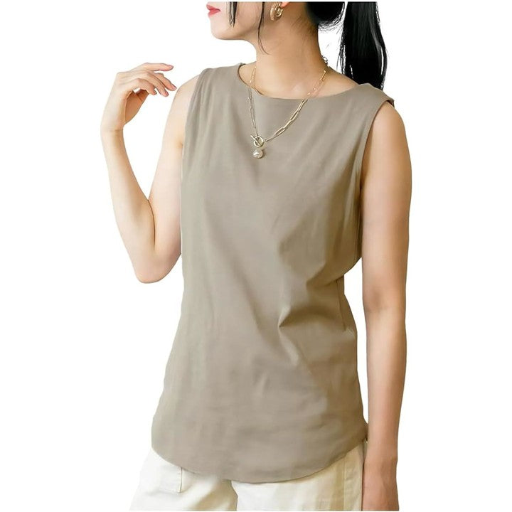 [クロスマーベリー] ストレッチ タンクトップ レディース インナー コットン 綿 ノースリーブ スポーツ 大きいサイズ 無地 綿100 ボートネック シンプル JX104-KH-LL |