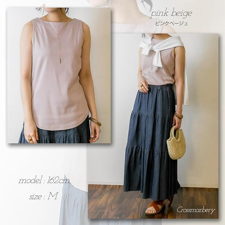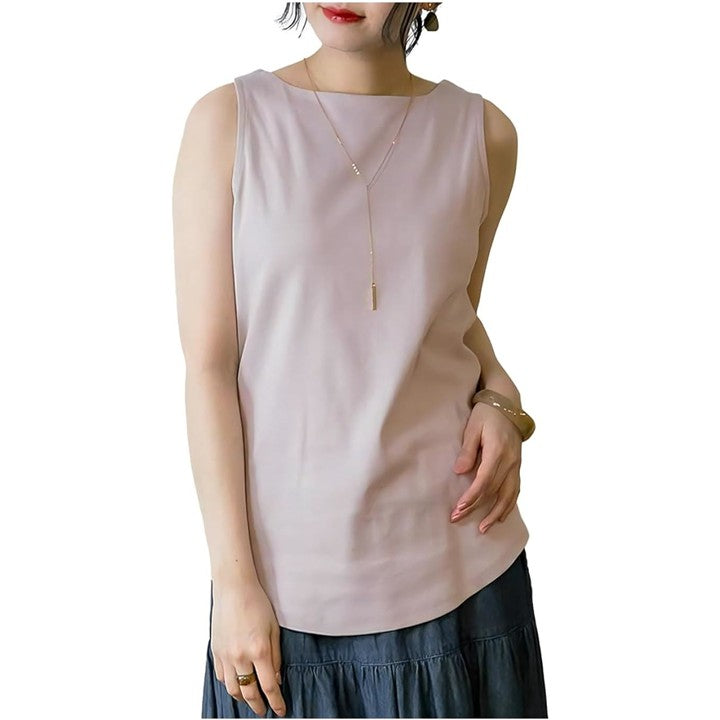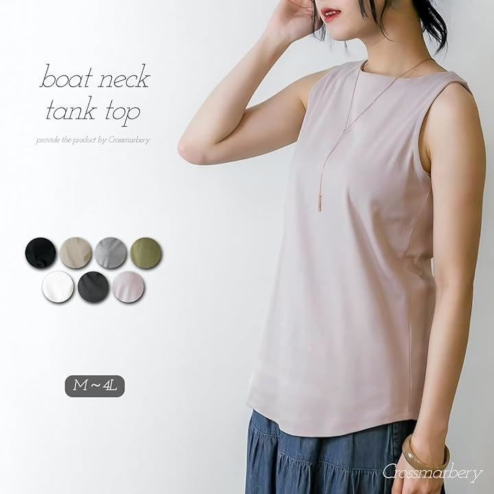 [クロスマーベリー] ストレッチ タンクトップ レディース インナー コットン 綿 ノースリーブ スポーツ 大きいサイズ 無地 綿100 ボートネック シンプル JX104-PKB-M |