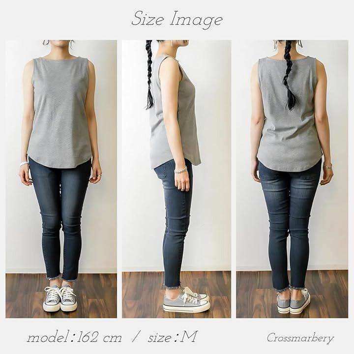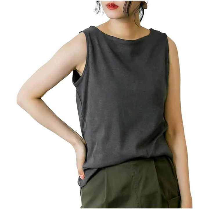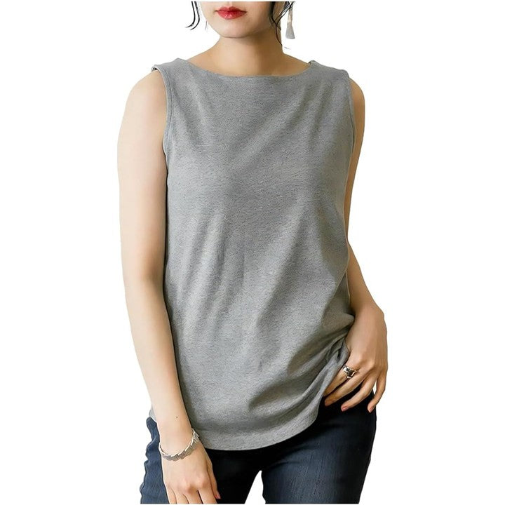 [クロスマーベリー] ストレッチ タンクトップ レディース インナー コットン 綿 ノースリーブ スポーツ 大きいサイズ 無地 綿100 ボートネック シンプル JX104-CGY-M |
