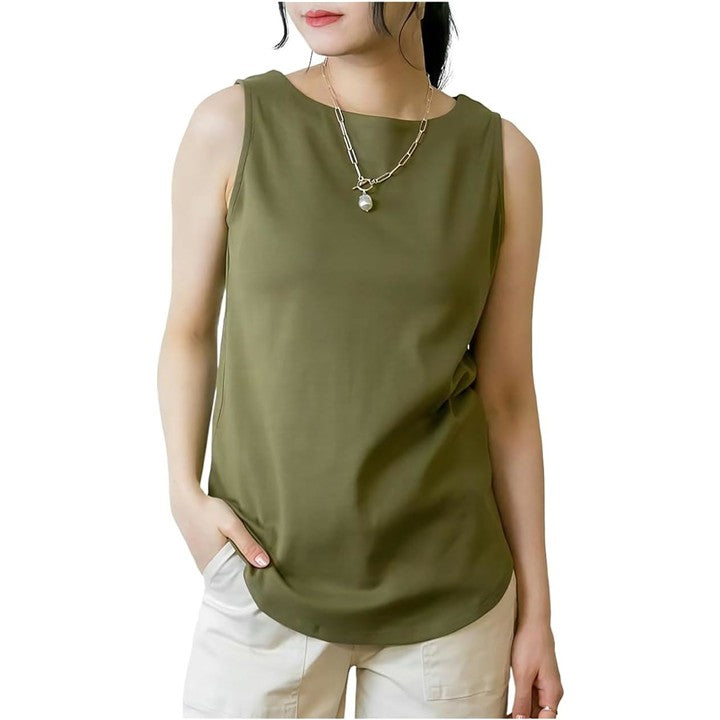 [クロスマーベリー] ストレッチ タンクトップ レディース インナー コットン 綿 ノースリーブ スポーツ 御洒落 大きいサイズ 無地 綿100 ボートネック 可愛い 大きめ ゆったり 部屋着 肌着 カーキ シンプル JX104-KH-3L |