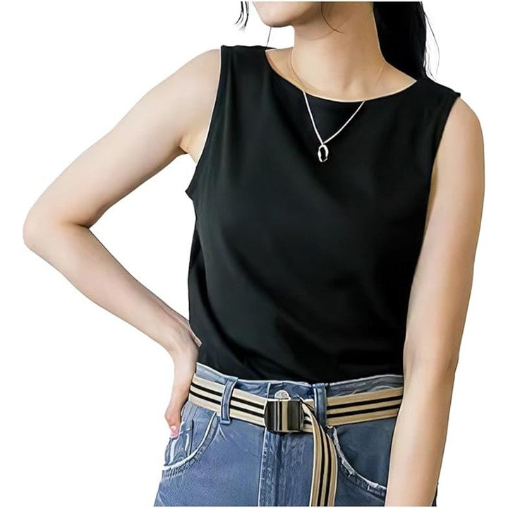 [クロスマーベリー] ストレッチ タンクトップ レディース インナー コットン 綿 ノースリーブ スポーツ 大きいサイズ 無地 綿100 ボートネック シンプル JX104-BK-M |