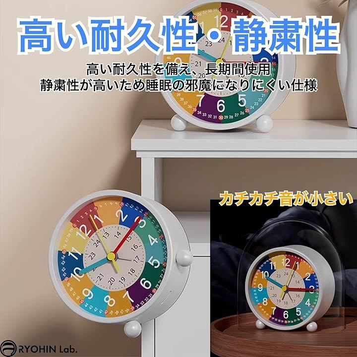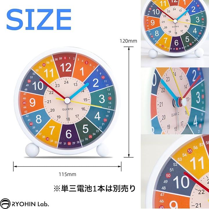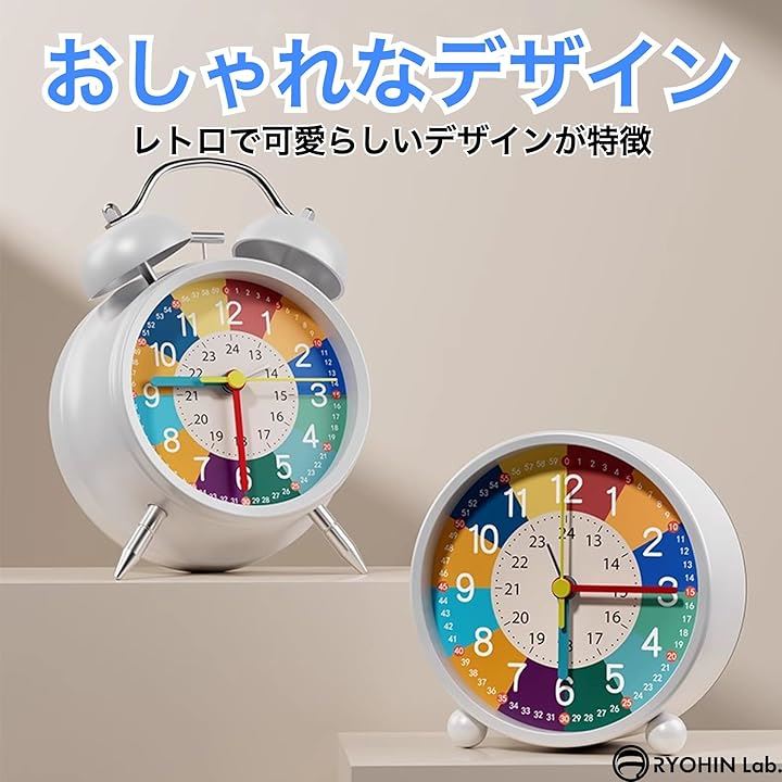 良品ラボ 目覚まし時計 置時計 アナログ 子供 可愛い 大音量 カラフル キッズ 小型 学習時計 1個