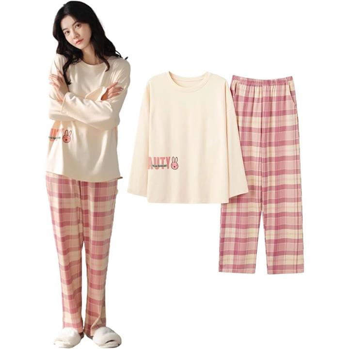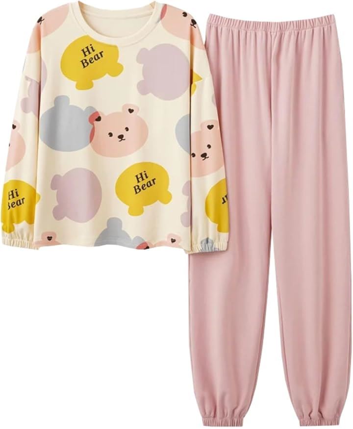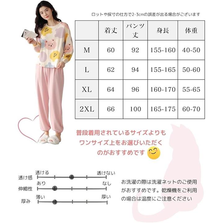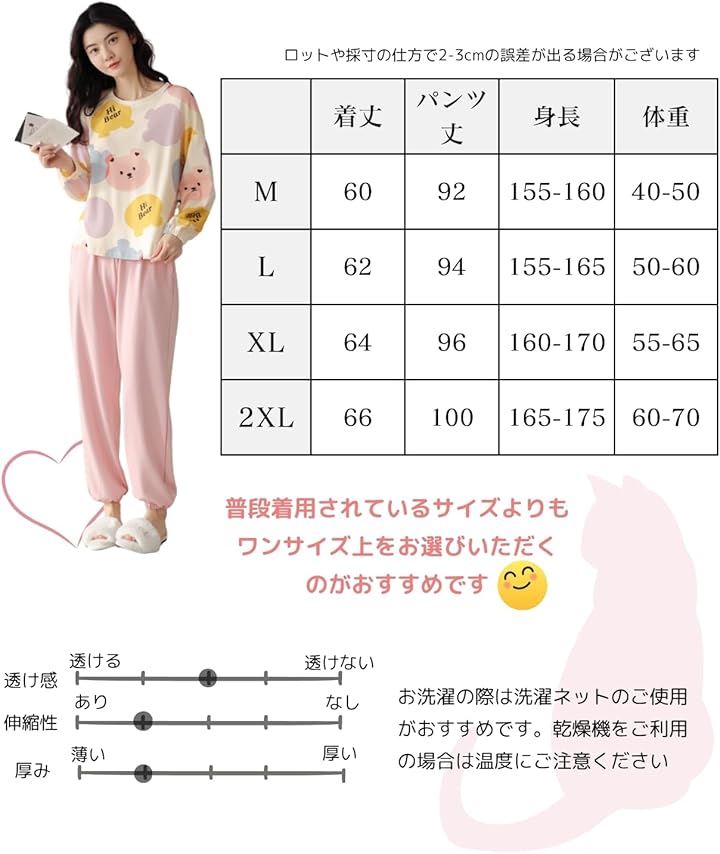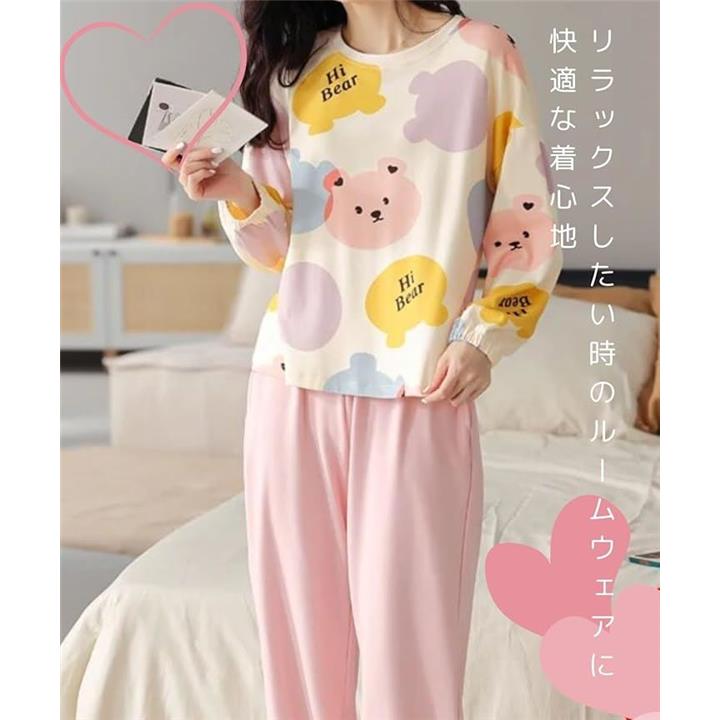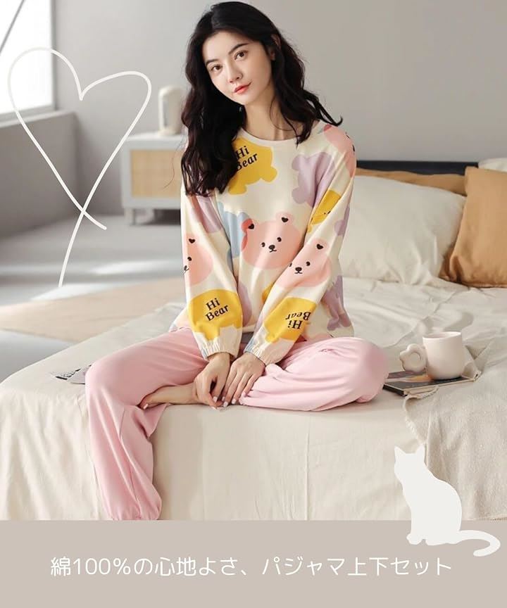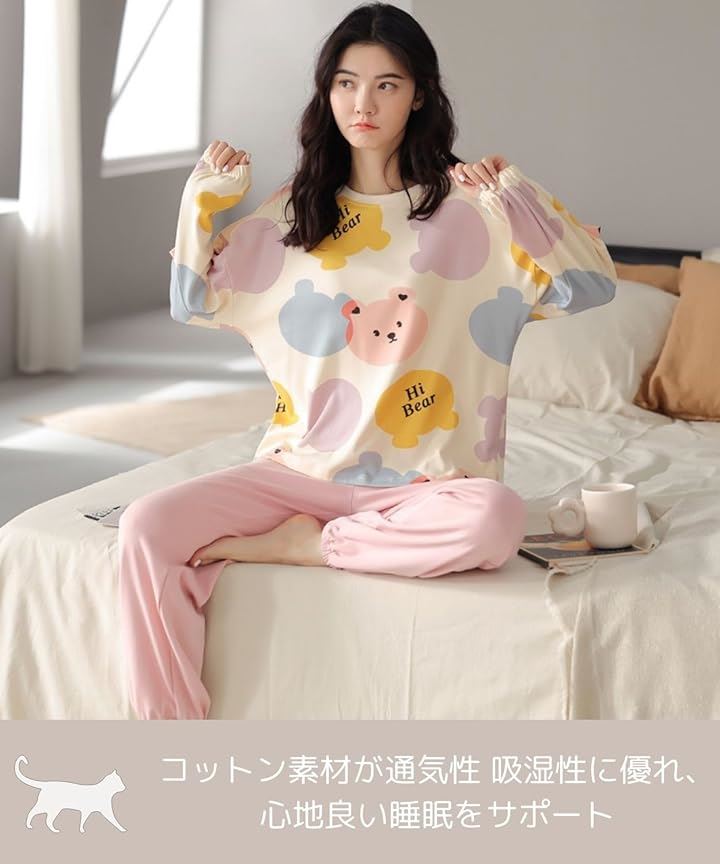 [MowaLef] パジャマ レディース 綿100% 春 夏 コットン 薄手 軽やか リラックスウェア 長袖 長ズボン 柔らか 寝巻き 丸首 可愛い ルームウェア |